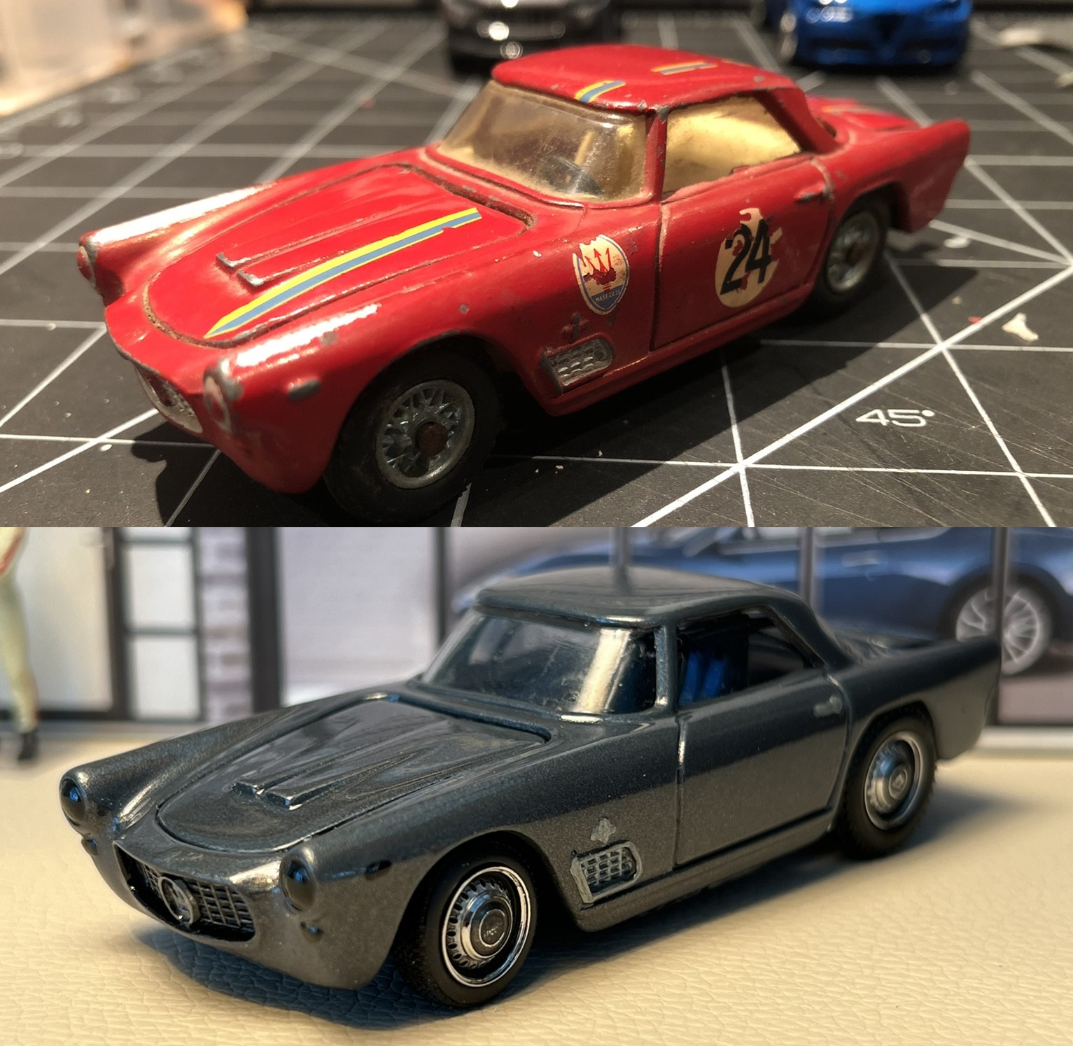 Après ces deux "essais" sur une Bora et une GranCabrio ajoutés aux précédentes opérations de rénovation de petites autos, je me sens prêt pour attaquer des modèles personnalisés et mes kits...