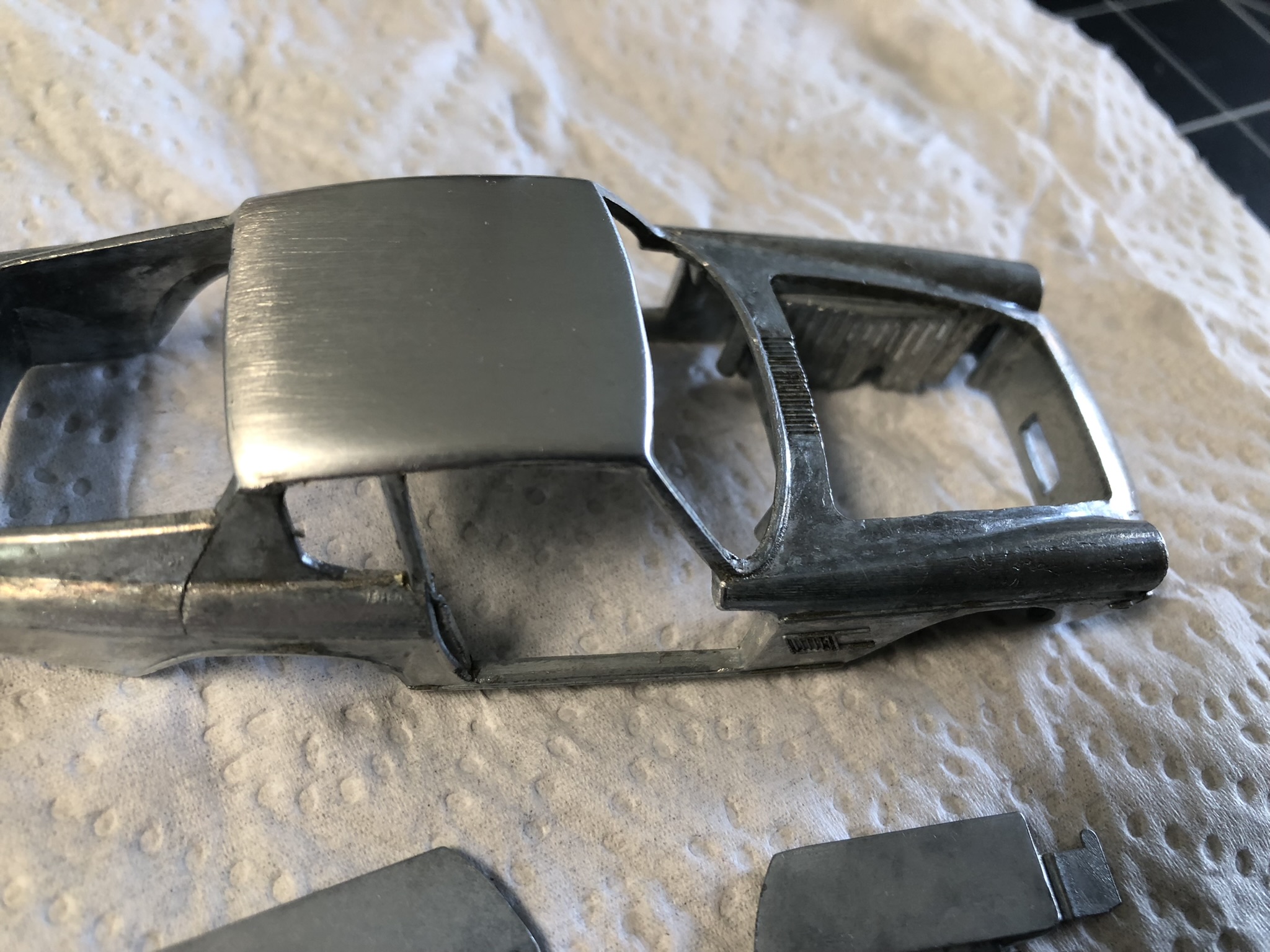 Aprés un essai de ponçage sur le pavillon je décide de passer la carrosserie au Glanzer...