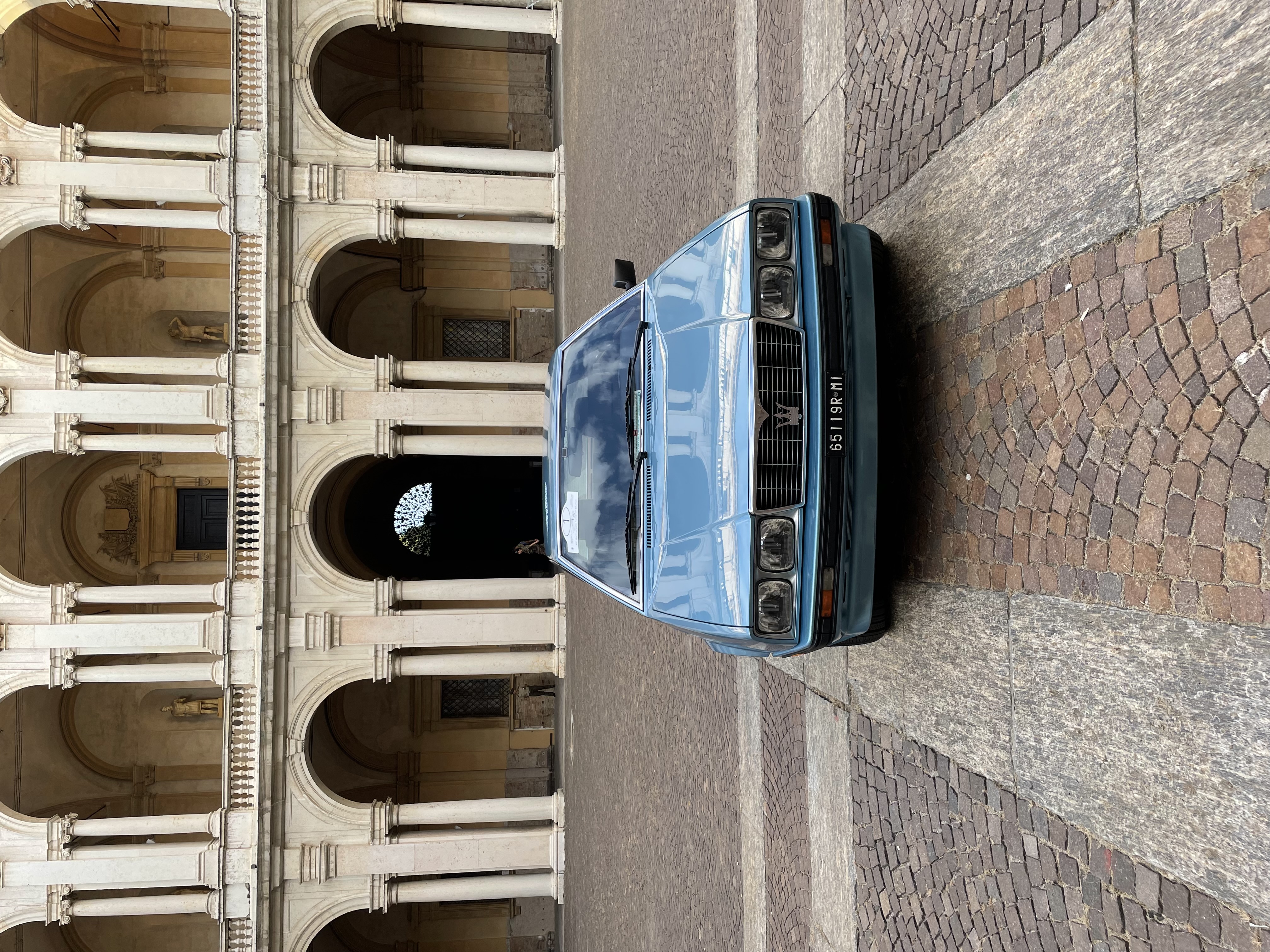 je voudrais mettre un coup de projecteur particulier sur cette belle Biturbo Blu Azzurro qui fut choisie à juste titre pour être placée au centre de la cour d'honneur du palais Ducal de Modène lors des festivités des 40 ans de la Biturbo, la semaine dernière. Son histoire est intéressante car il s'agit de la plus vieille Biturbo encore en service, elle faisait partie des 18 exemplaires de présérie fabriqués fin 1981-début 1982.