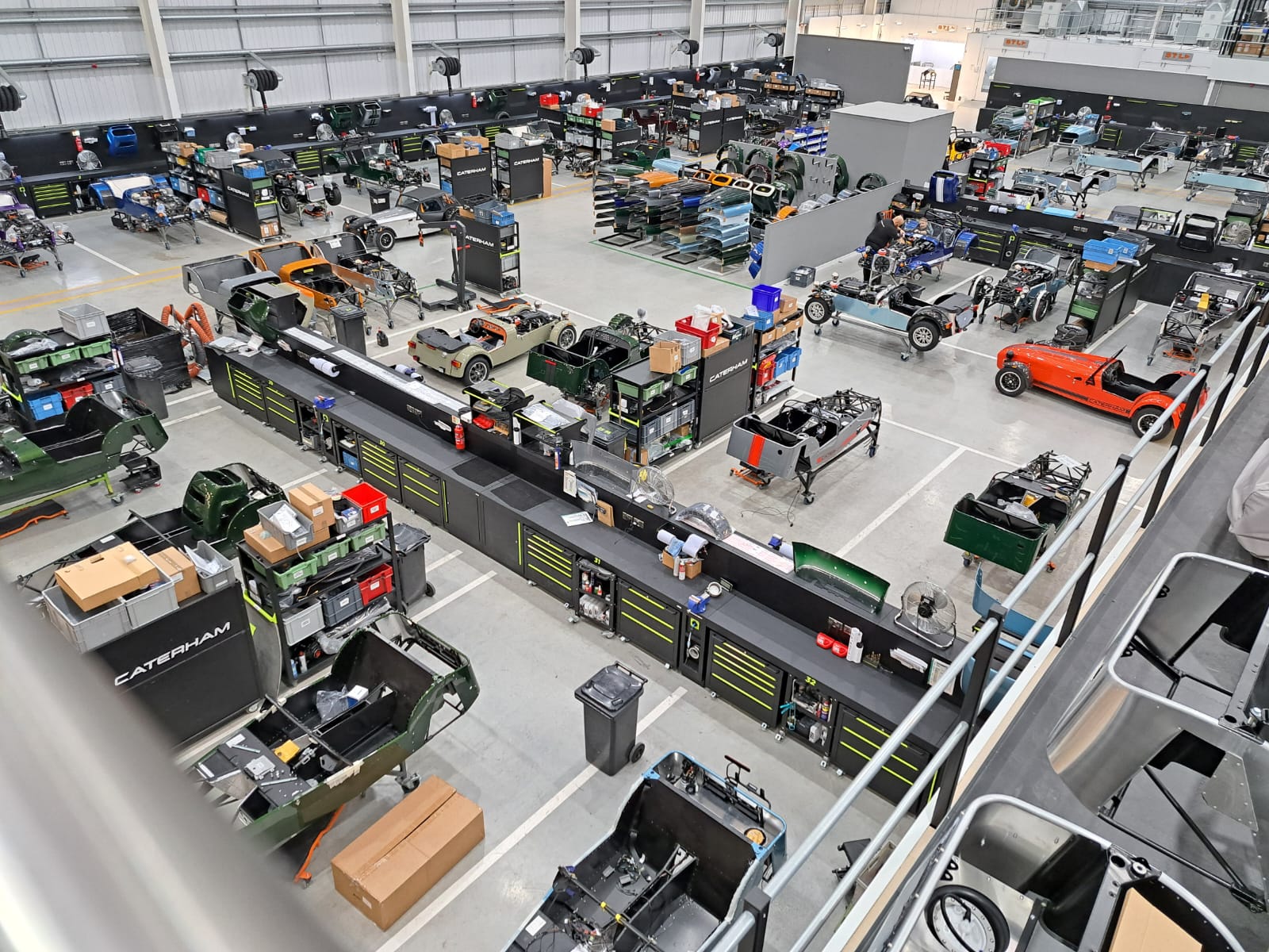 Etape 1 : visite de l'usine Caterham flambant neuve, ou une plongée dans un arc en ciel de machines diaboliques