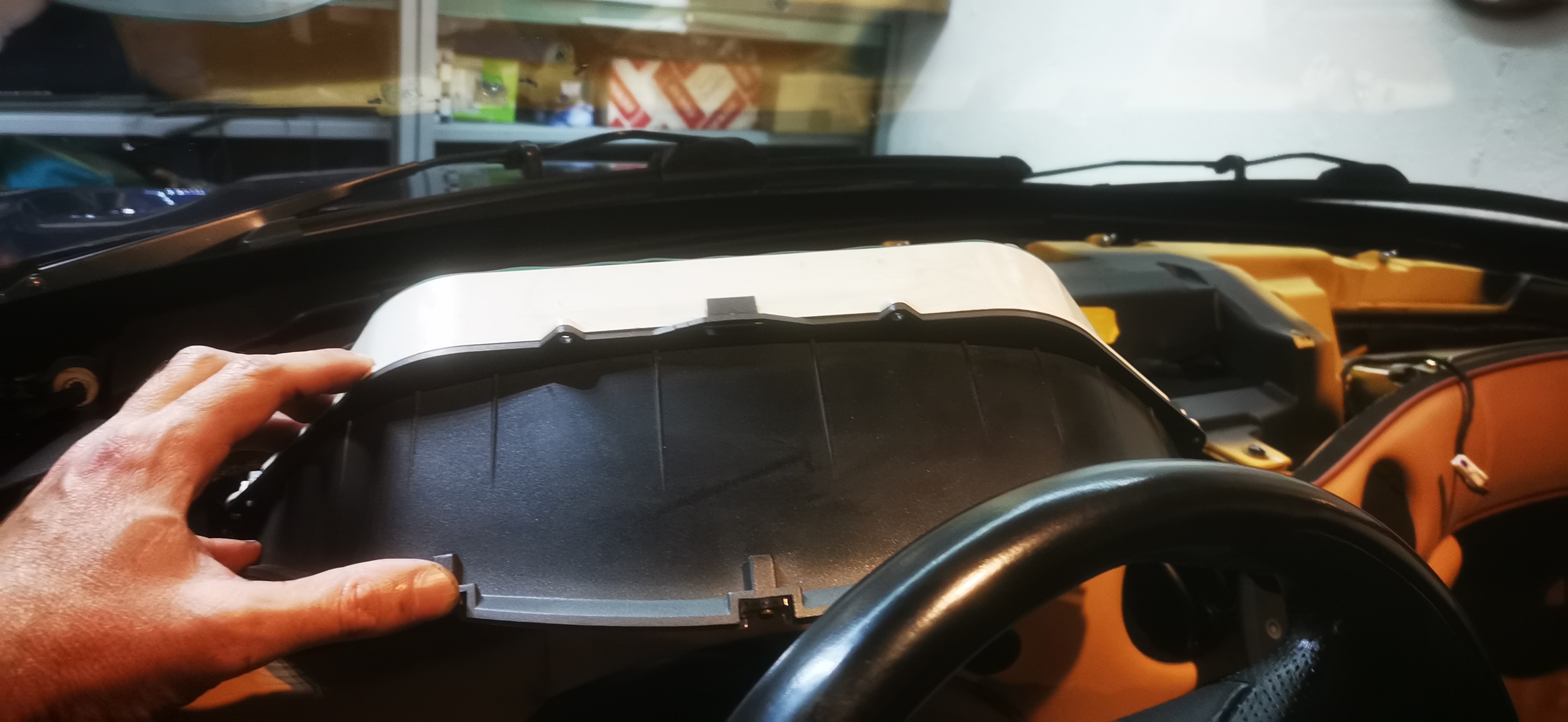 Me voilà en plein dedans, après avoir repoussé l'opération mainte et mainte fois :D je suis venu à bout de ce tableau de bord ! Opération qui va ce prolonger avec la réfection des boutons de tableau de bord et du coup la refabrication des caches extérieurs des différents organe du tableau de bord... je m'explique.