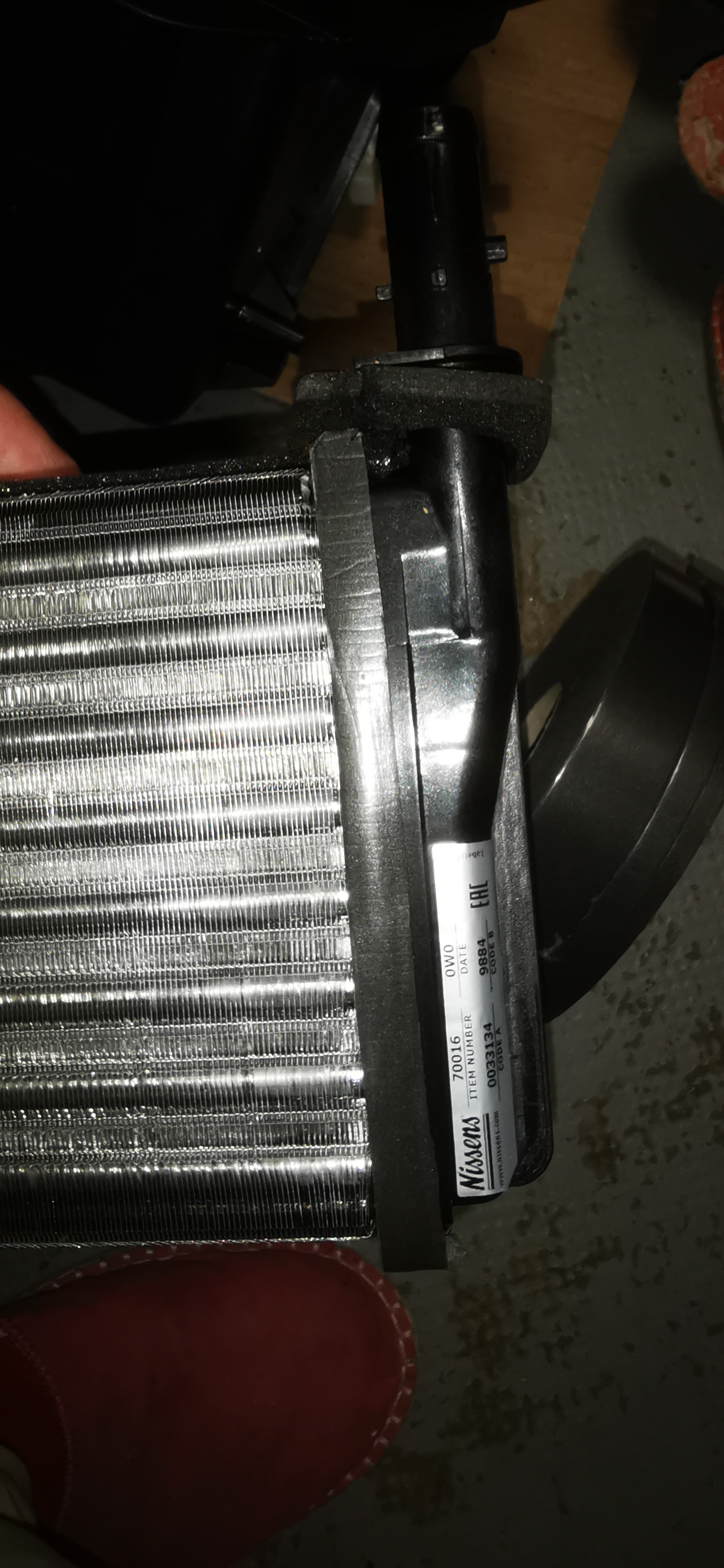 Le changement du radiateur est presque décevant après tout ce taf, 5 vis, hop on l enlevé et on met le neuf.. Il faut néanmoins rajouter un peu de mousse de chaque côté car sinon il y a un léger jeu. J ai utilisé de l antivibratile de chantier (rouleau à côté).