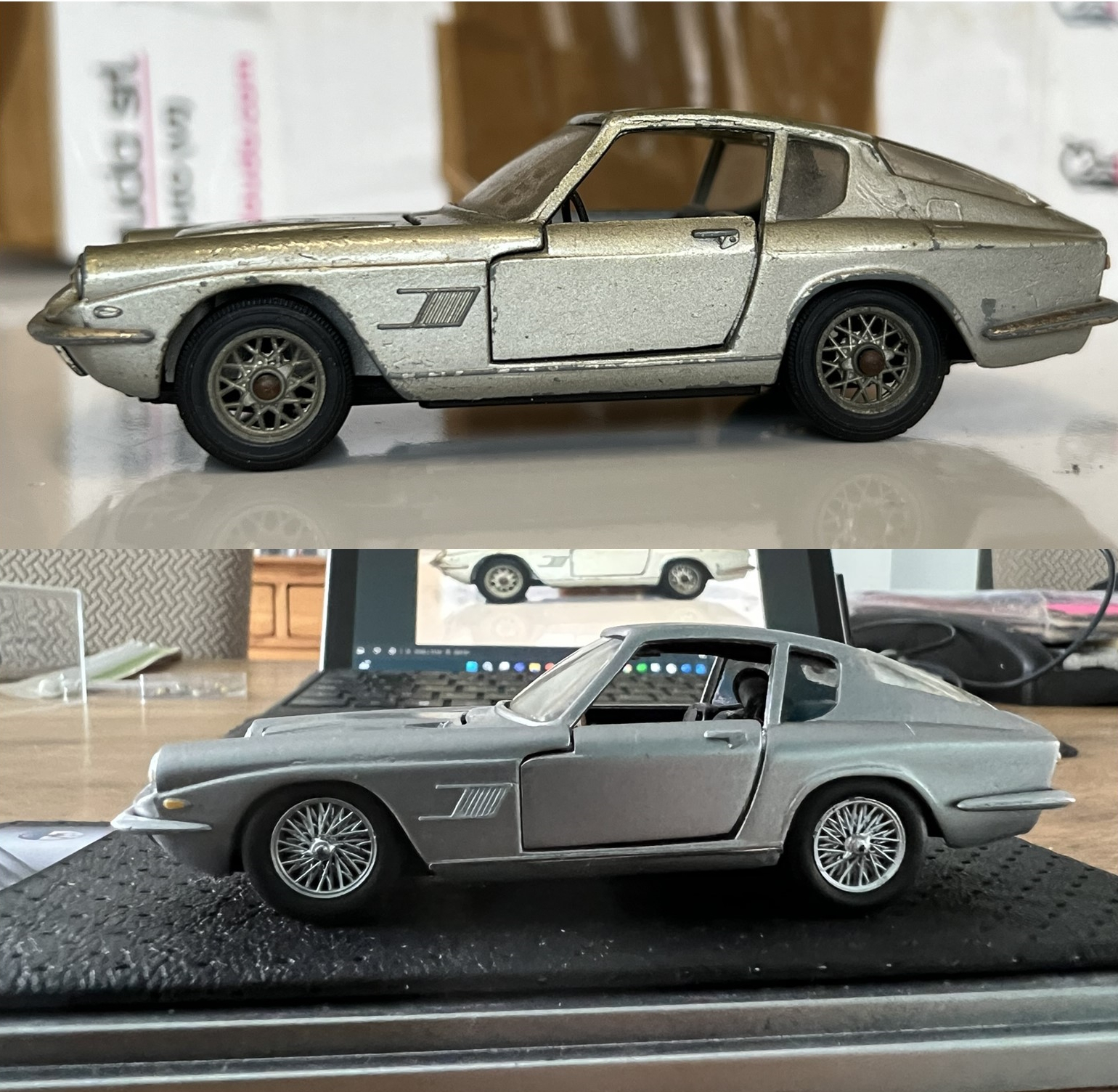 D'abord ce 4200GT Spyder Maisto. A nettoyer, peindre et embellir. Peut-être récupèrerai-je les jantes pour faire une 3200GT Asseto Corsa...