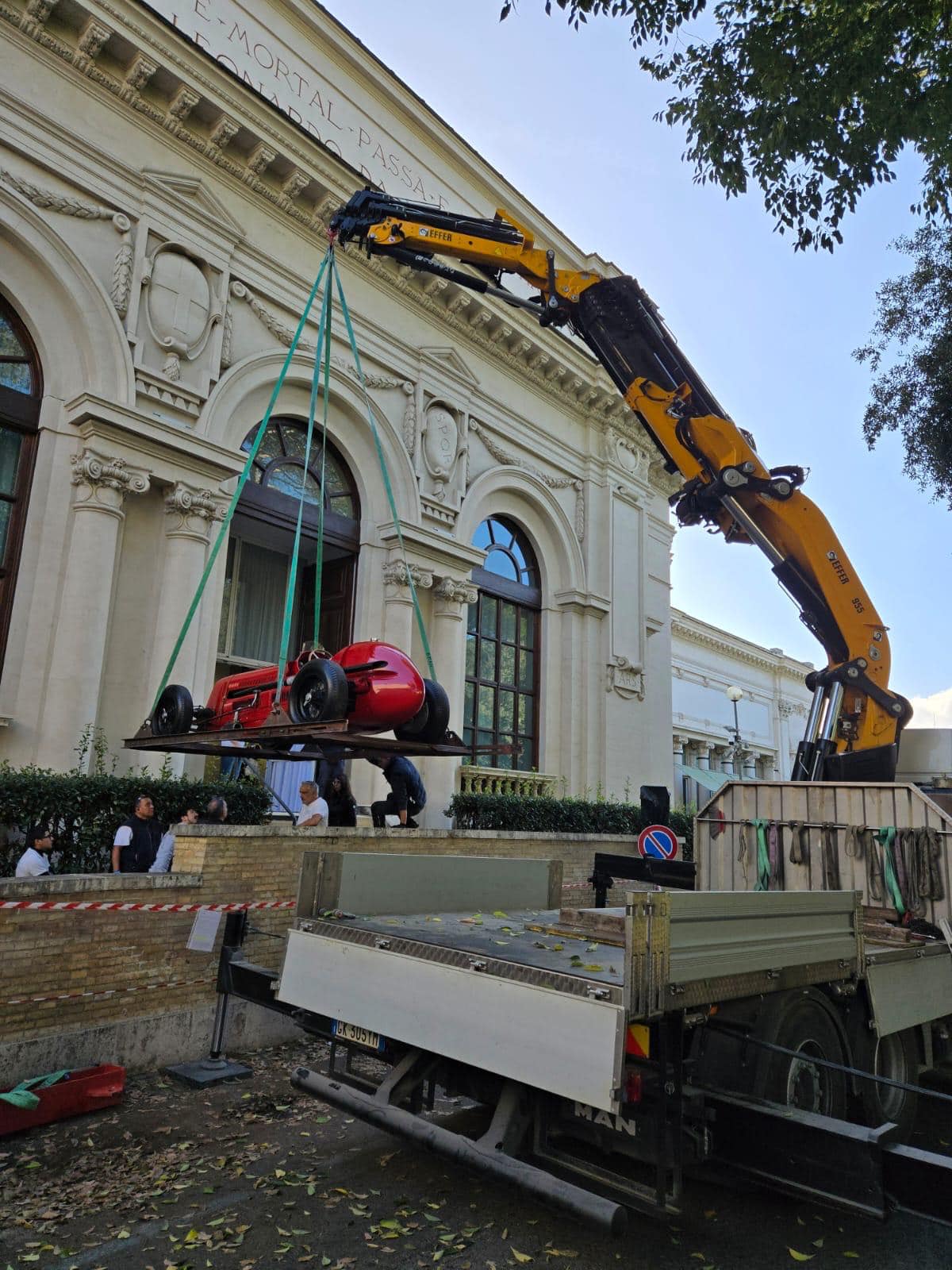 Remorque Rolfo pour aller à Bruxelles = le nec plus ultra des transporteurs, par contre la 6C à Rome a semble-t-il eu droit à un camion plateau digne de la grande époque... 🙀
