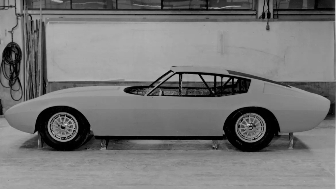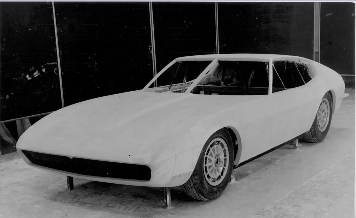 Un peu plus tard (la photo est datée de 1966) = la voiture est au niveau prototype, mais n'a pas encore reçu les poignées de porte =
