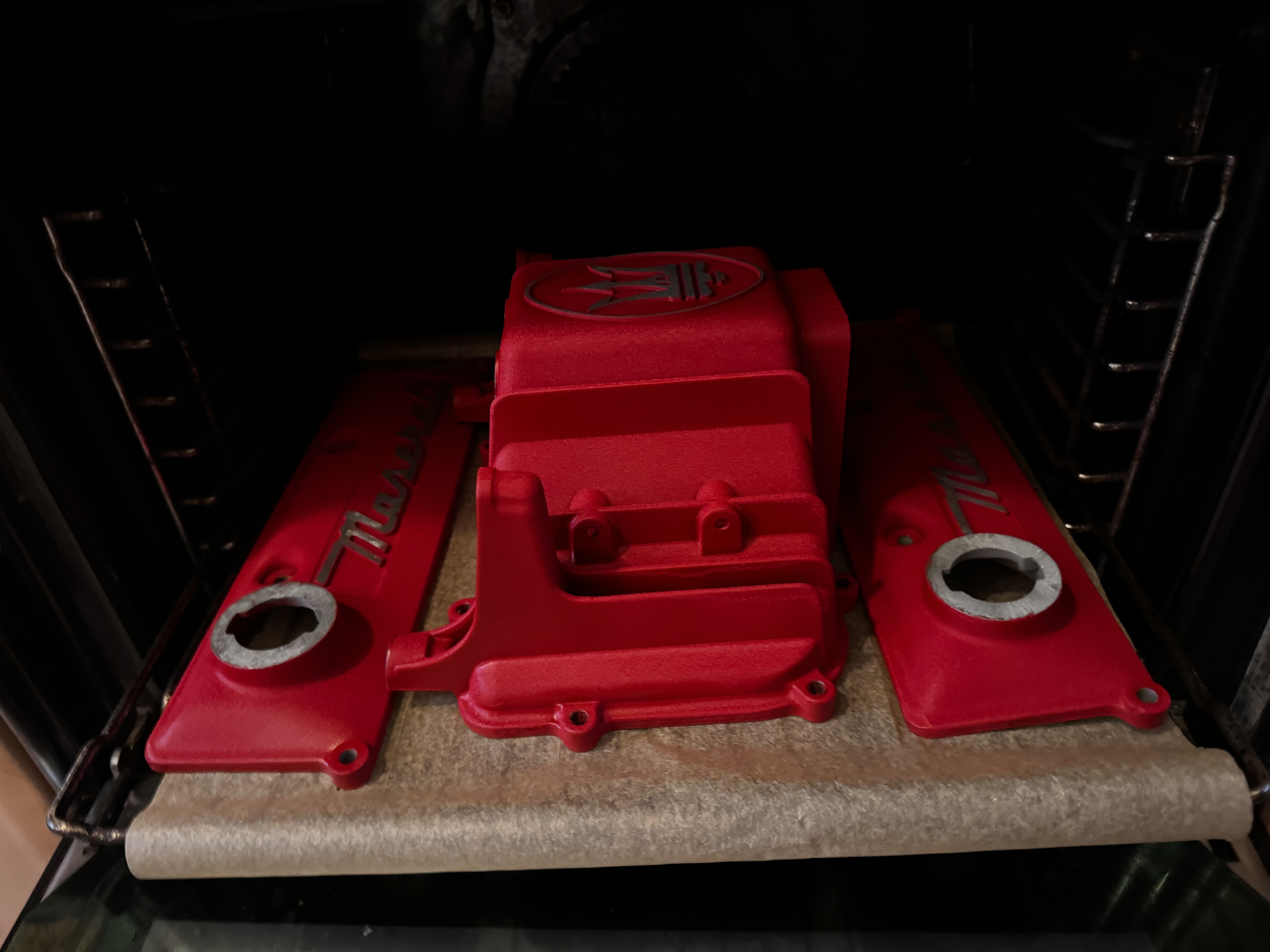 Pour les couvres culasses, j'ai tout d'abord chauffé la pièce nue au four avant de la peindre et de la remettre dans le four, le résultat est bien meilleur.