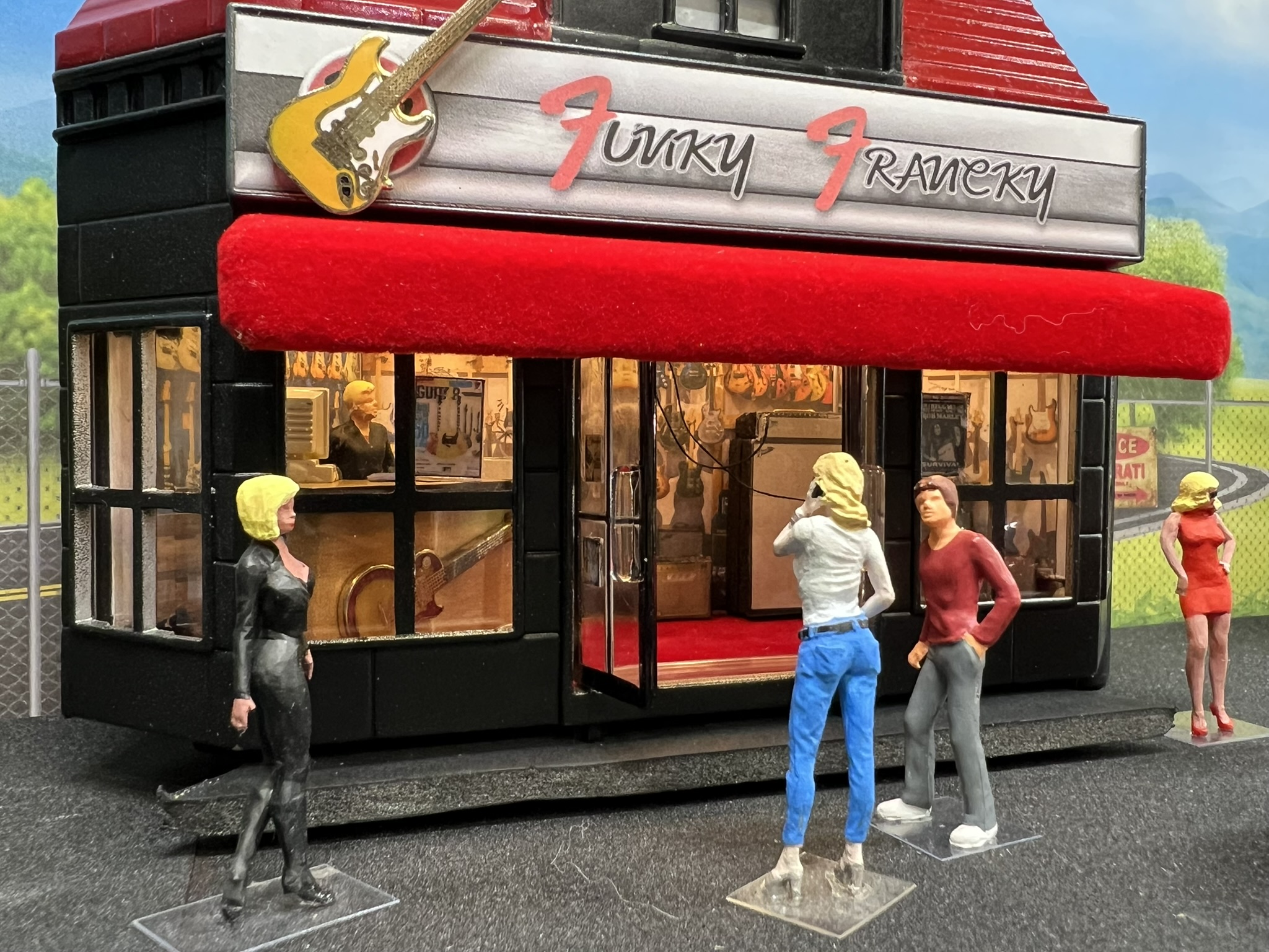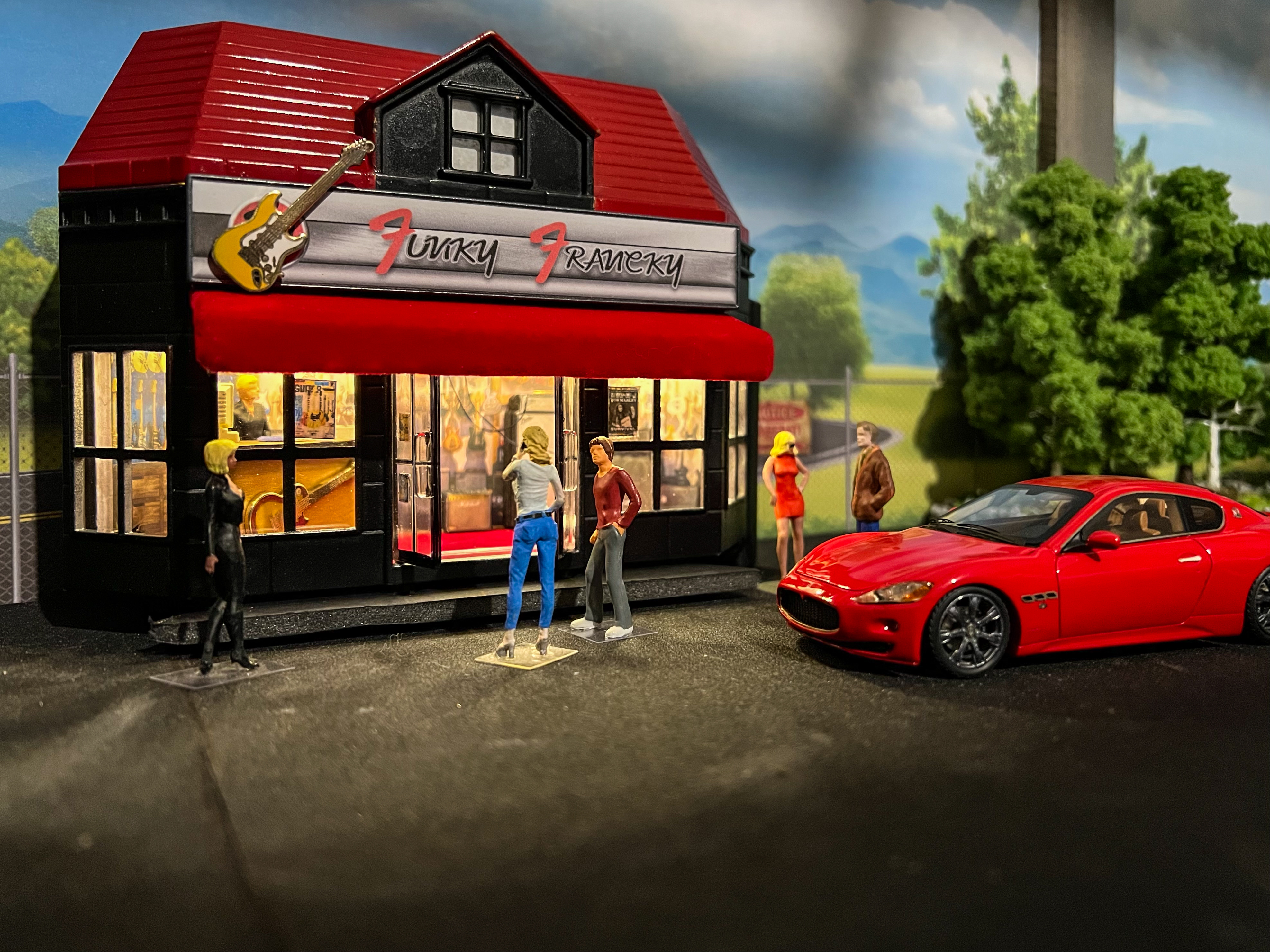 Alors je continue le délire avec le magasin de musique "FUNKY FRANCKY" qui est terminé. reste deux musiciens à peindre et à ajouter.