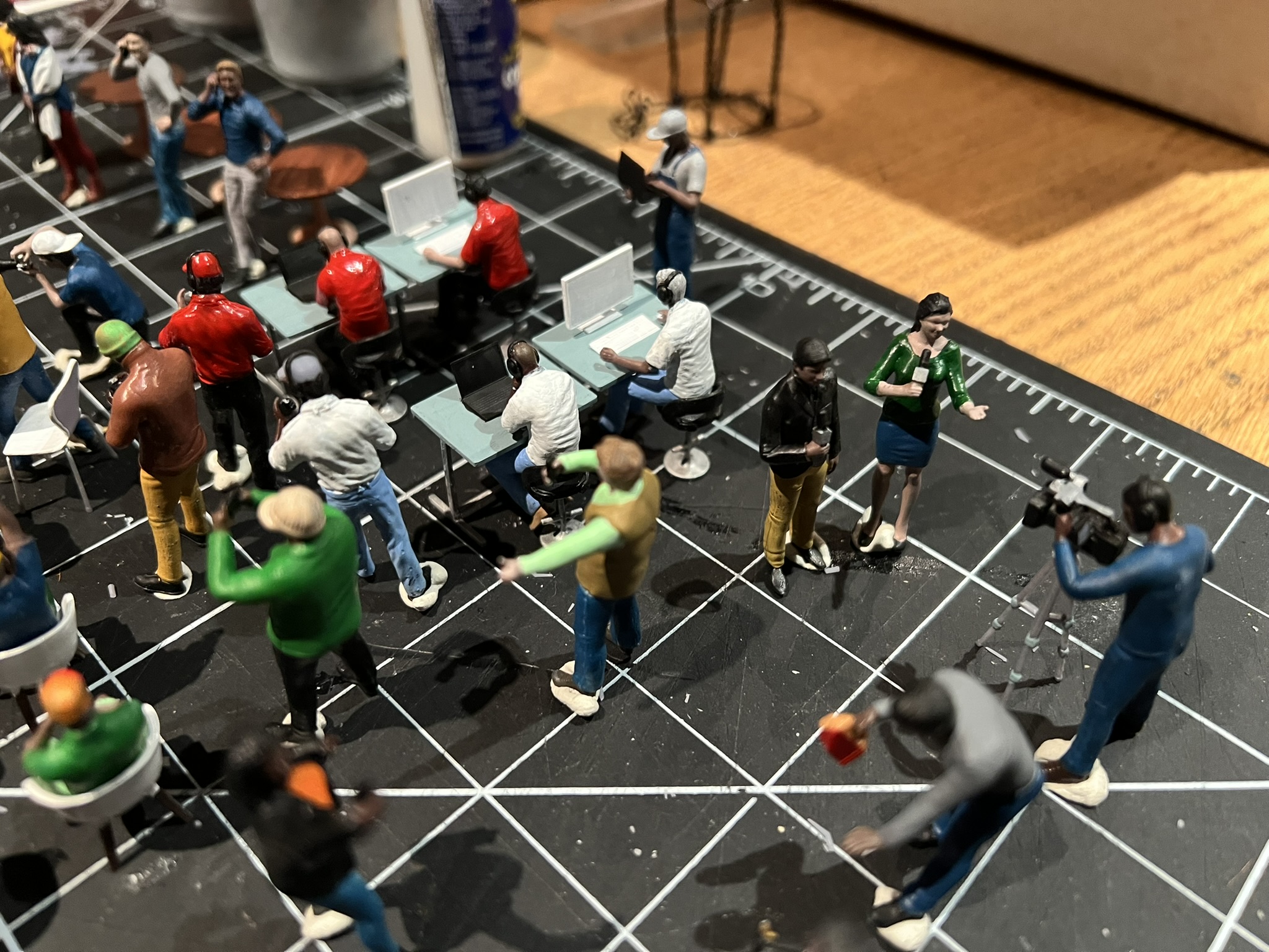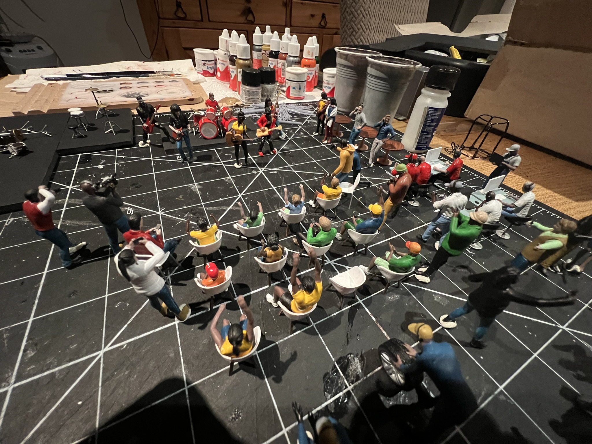 Mais comme je veux un résultat de qualité, je mets plusieurs couleurs, je peins de très petits détails (ceintures, boutons, montres, etc...) et là avec les musiciens c'est encore pire....