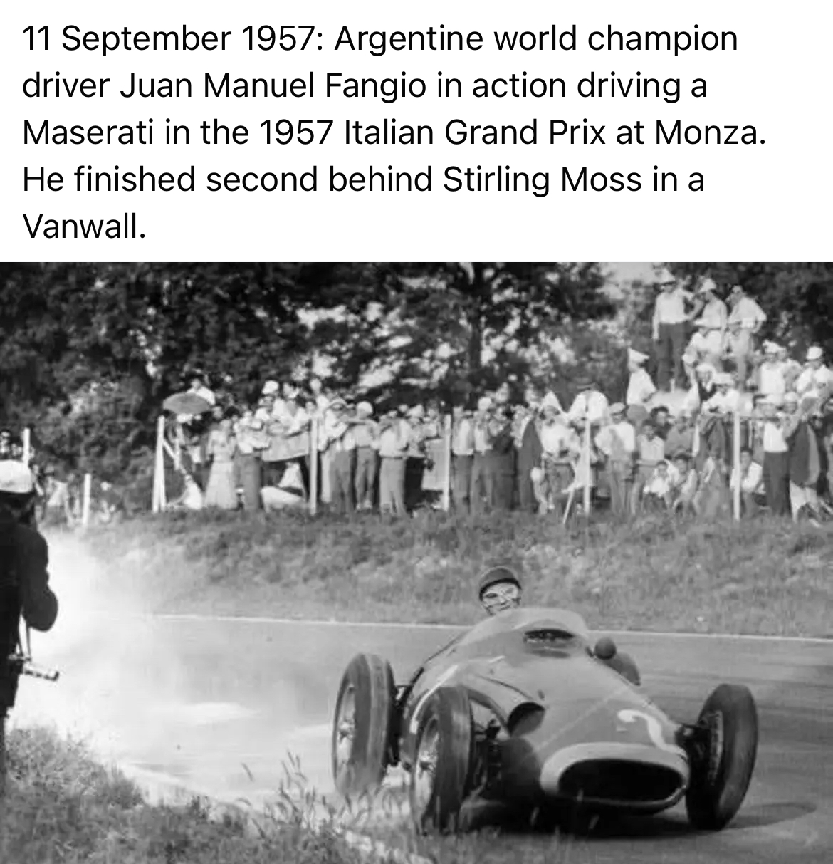 Célèbre photo du tout aussi célèbre photographe automobile Jesse Alexander, pas encore citée sur ce fil, je crois = Juan Manuel Fangio sur Maserati 250F, Grand Prix de France 1958, circuit de Reims-Gueux.