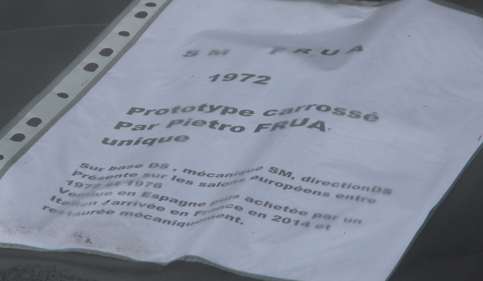 Il s'agit d'un "concept car" unique, baptisé SM "S", présenté au salon de Genève 1972 par Pietro Frua sur châssis DS et avec moteur SM carbu 170 cv. Le châssis DS permettait de réduire la voie avant très large de la SM.