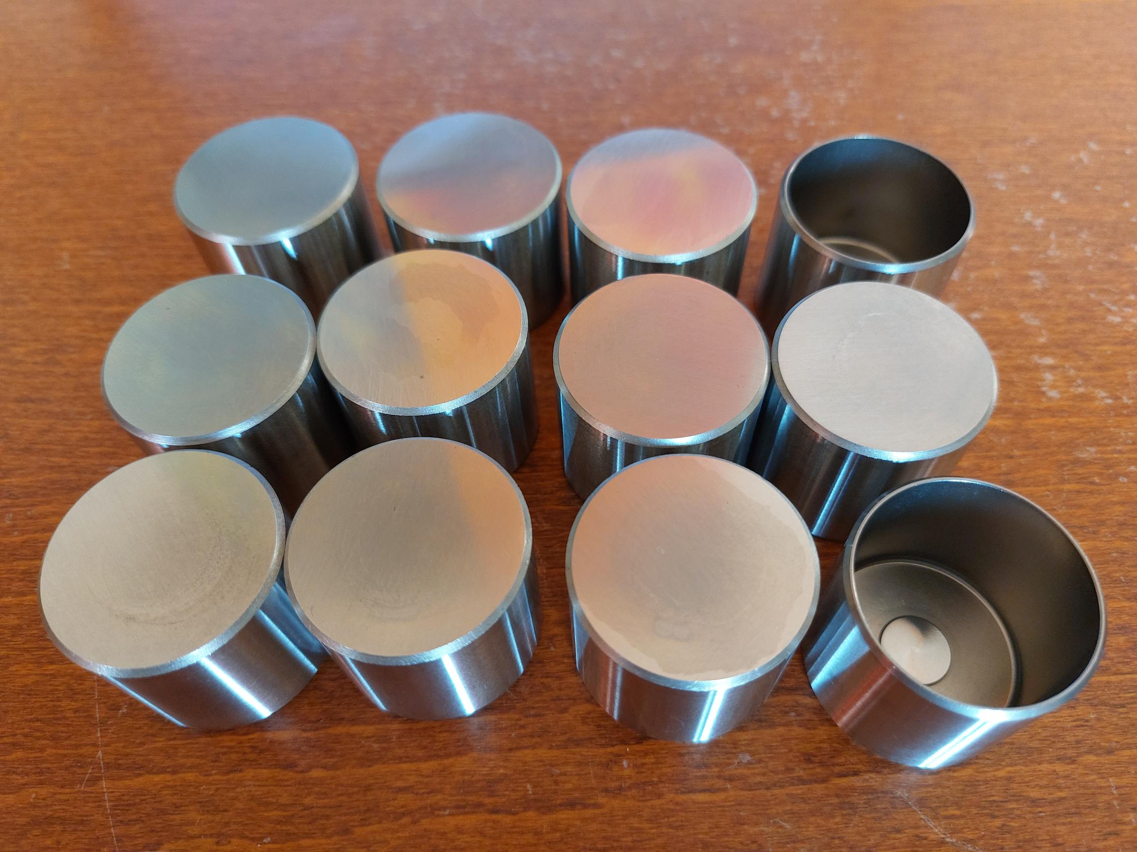 J'ai fait refabriquer les poussoirs pour tous les v6 24v biturbo (224, 424, 430 4v, 222 4v, racing, ghibli, qp4). Admission et échappement. Dimensions et poid identiques à ceux d'origine. Acier au chrome trempé et nitruré. Surfaçage plat précis. Dureté de la surface vérifiée par ceux qui les ont surfacé et poussoirs testés sur ma ghibli.