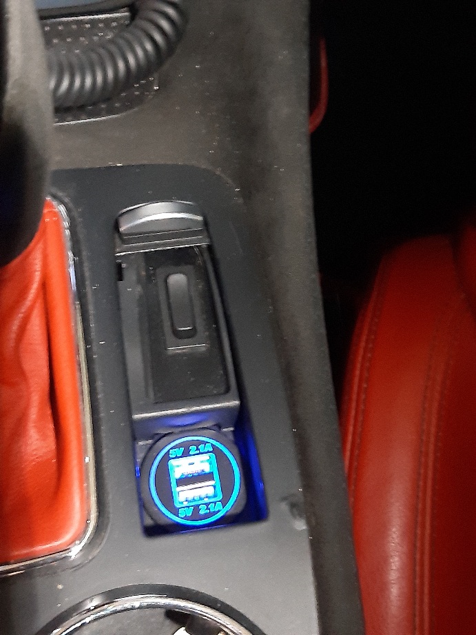 J'ai utilisé un support de plaques retourné afin qu'il serve comme support de caméra, et un profilé (fait maison) en aluminium laqué noir qui a servi de cache caméra. Pour les branchements c'est pas très compliqué car le module carplay/Android auto est prévu avec les entrées nécessaires, mais la aussi je ne me suis pas contenté de faire simple, puisque je voulais pouvoir actionner les caméras quand je le voulais, donc par exemple quand je dois effectuer une manœuvre en marche arrière je peux allumer la caméra avant, ceci a été possible avec l'aide de 2 doubles relais et un bouton de commande basculeur on/off/on que j'ai discrètement dissimulé sous la petite trappe dans le compartiment cendrier, j'en ai d'ailleurs profité pour installer une double prise USB au lieu de l'allume cigare. Voici les vues avant et arrière que j'ai, c'est vraiment très net.