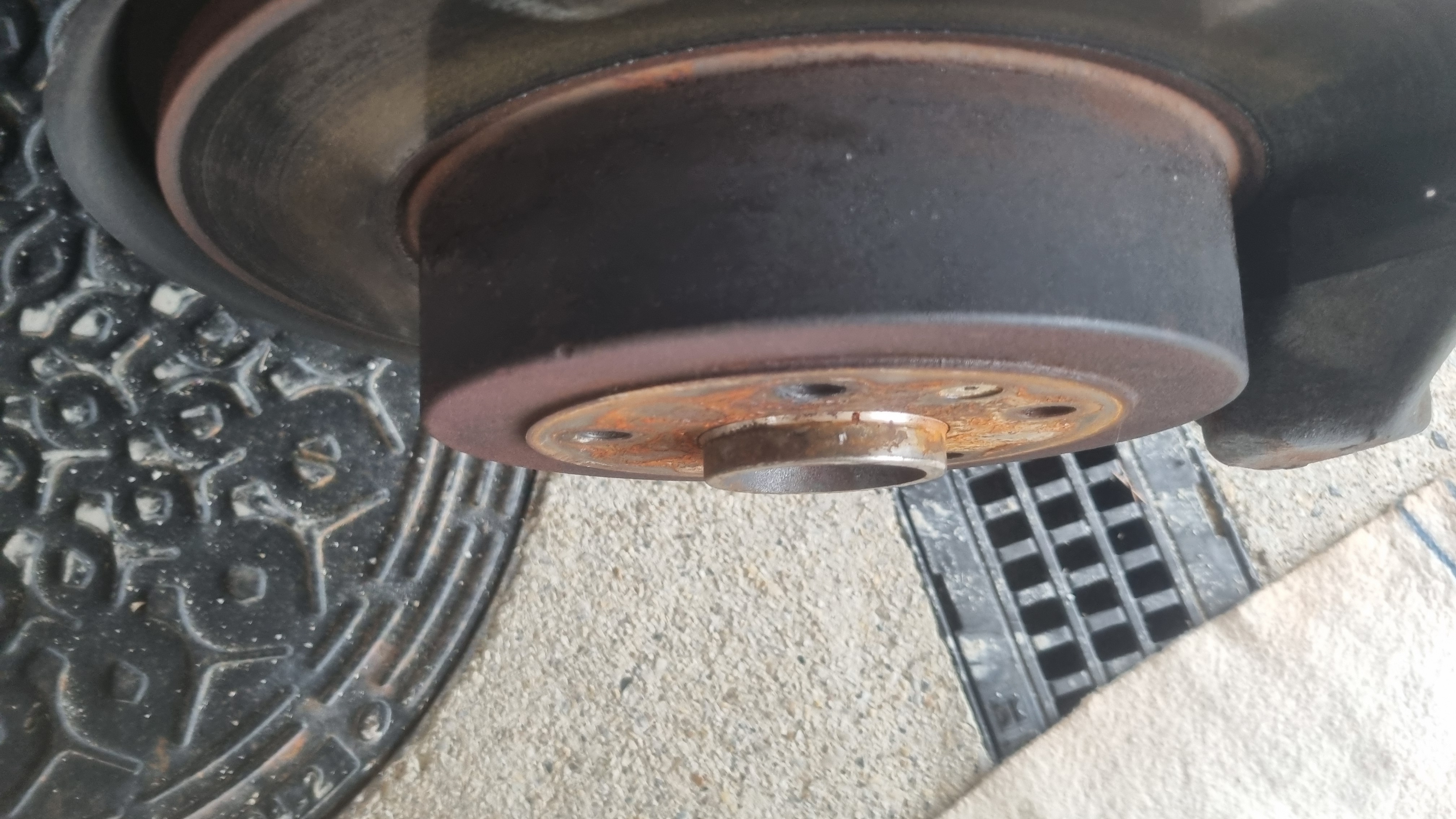 Salut les amis. Bon ben les jantes ca ne le fait pas. Entraxe trop grand au pif je dirais 112 mm au lieu de 106 nécessaire. Et trou central pour le moyeu trop large aussi, et pas assez profond. Alors je ne connais pas la profondeur de moyeu normale mais celui de ma shamal me paraît assez court