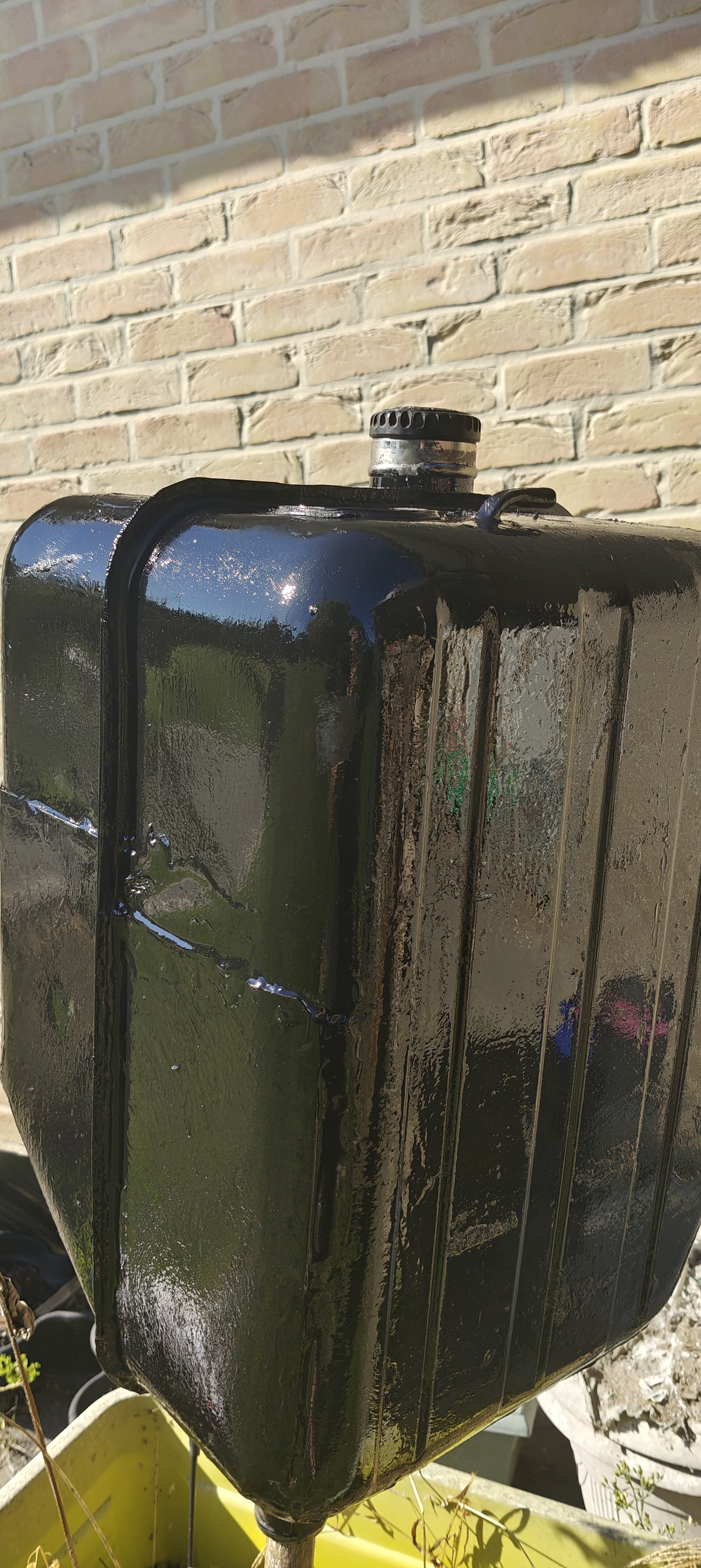 Des trous de la taille d'une grosse tête d'aiguille à plusieurs endroits, j'ai rebouché avec une colle bicomposant résistante aux hydrocarbures. Et une fois sec, j'ai recouvert le tout de mon produit préféré. Le por15.