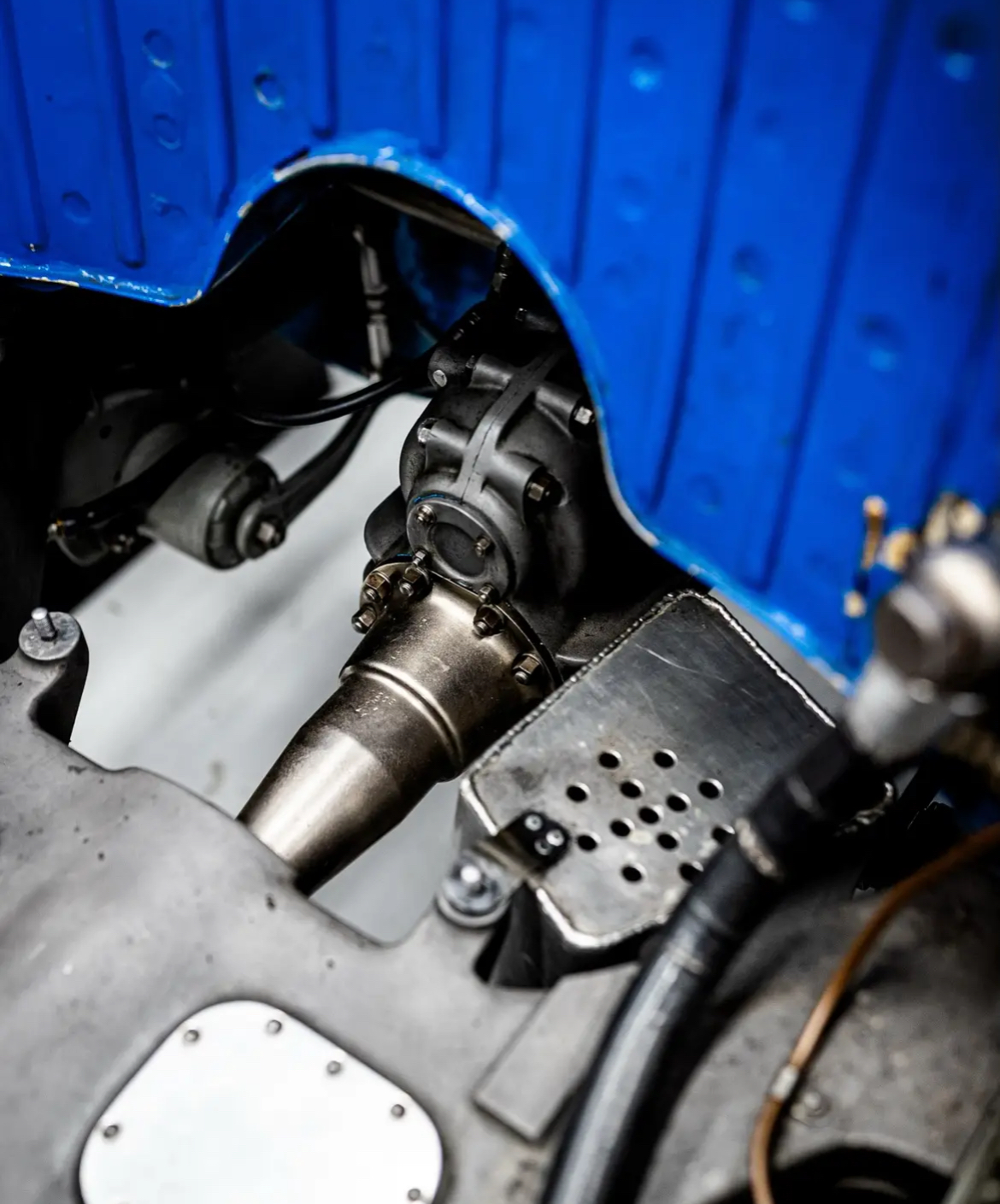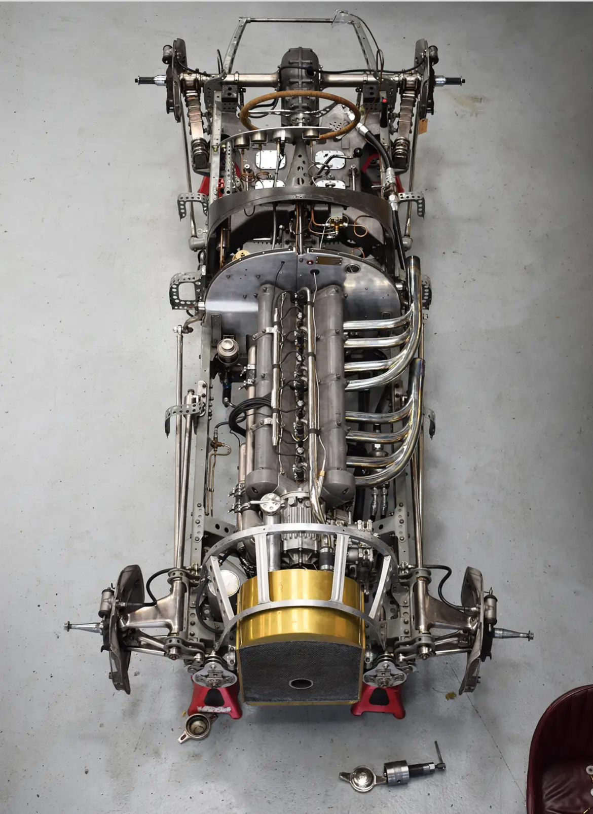 Très belle 8CTF avec détails dont la commande de direction et le réservoir d’huile en magnésium sous le siège :