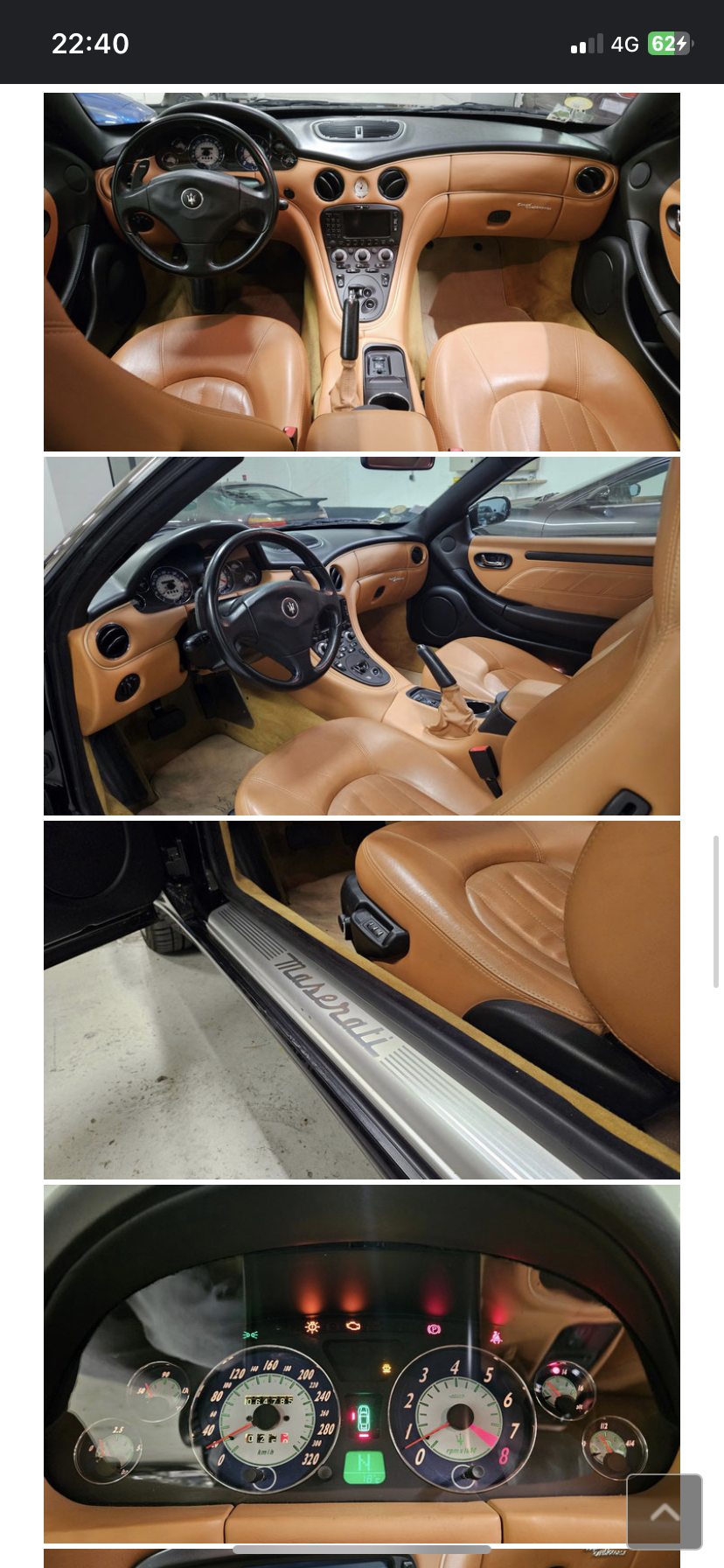 je suis l'heureux propriétaire d'une belle Maserati 4200 GT de 2005 couleur Nero Carbonio et intérieur cuir Cuoio qui totalise 65 000km depuis moins d'un mois.