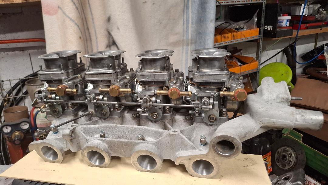Voila mes carburateurs rénovés: J'ai installé sur le collecteur, au dessus de chaque conduit un piquage pour une mesure de dépression sous carburateur afin de faire dans les meilleures conditions le réglage de la carburation.
