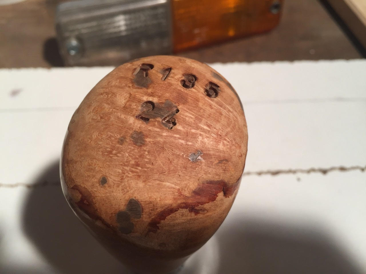 Le pommeau de vitesse, se raye, puis la transpiration se fait une voie, puis éclate le vernis et noircit le bois.