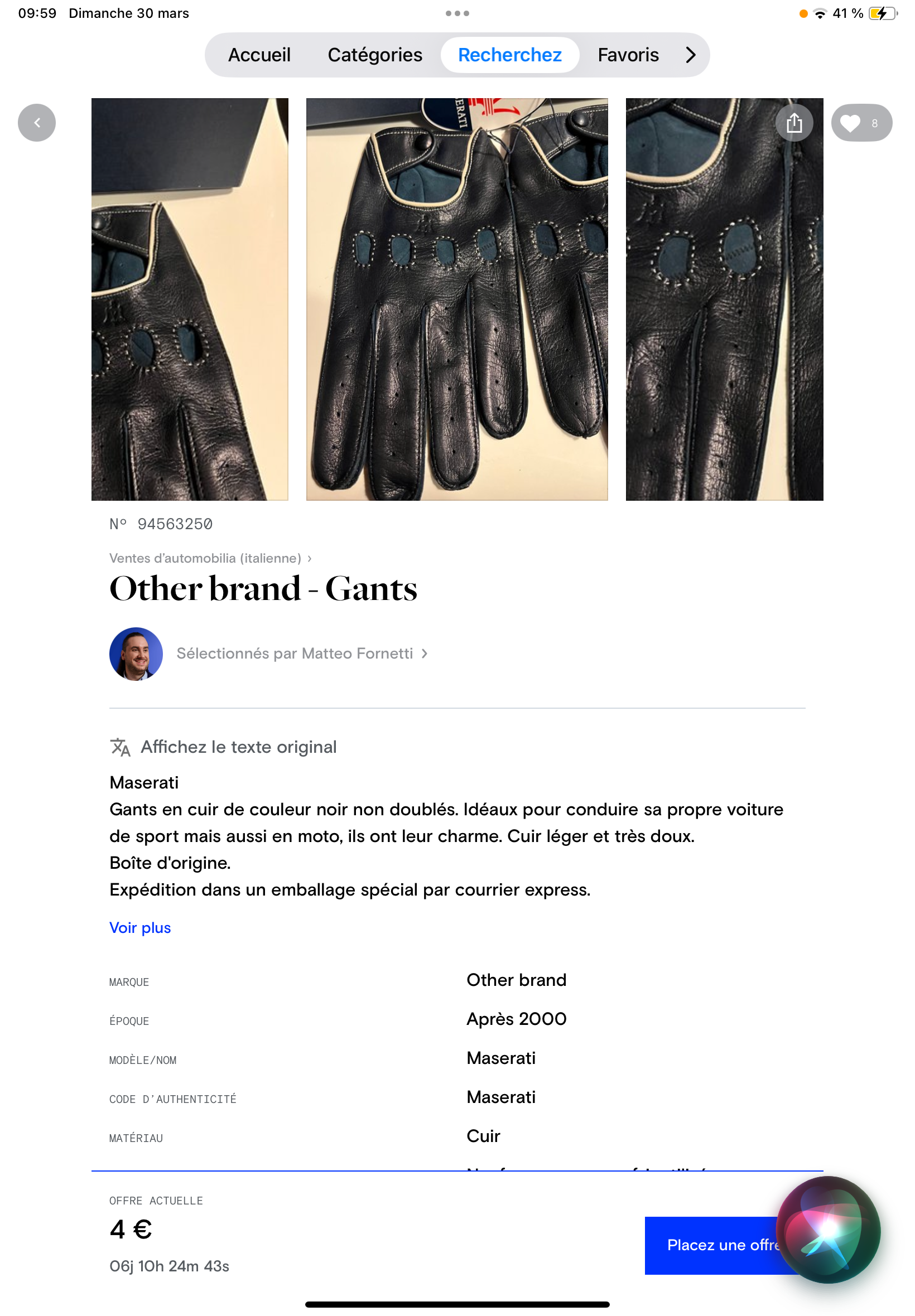 Il me semble que les gants Maserati ne sont pas si faciles à choper. Donc quand j'en voit je les propose ici.
