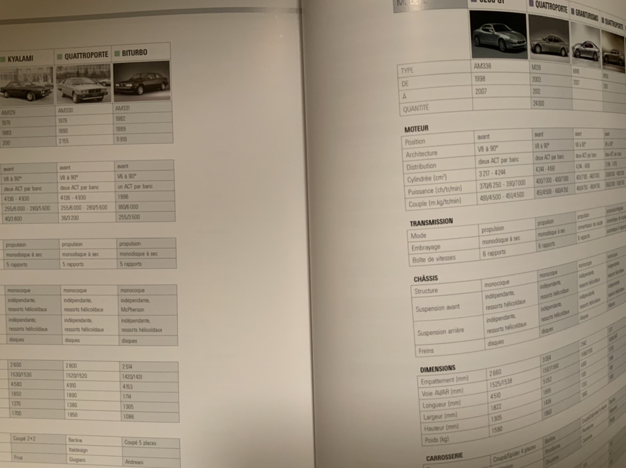 Je trouve que cette attitude est de plus très insultante pour les ingénieurs, ouvriers, techniciens des 20 années biturbos. Comme s ils avaient démérites. Vraiment, c est de la cretinerie de ne pas apprécier une biturbo carbu, la pestiferee. Qu est ce qu ils reprochent aux déclinaisons de 222 ? Une Shamal, c est extraordinaire. Une Primatist, c’est indescriptibleMent unique (on se demande ce que les,possesseurs ont bien pu faire d extraordinaire, pour mériter en avoir une :Maze ), qu est ce qu ils reprochent aux Ghiblis? Et ne parlons pas des QpIV. Dans le bouquin toujours, le renouveau c est la 3200, mais bon surtout la 4200 a moteur dégonflé par rapport aux ferrari.