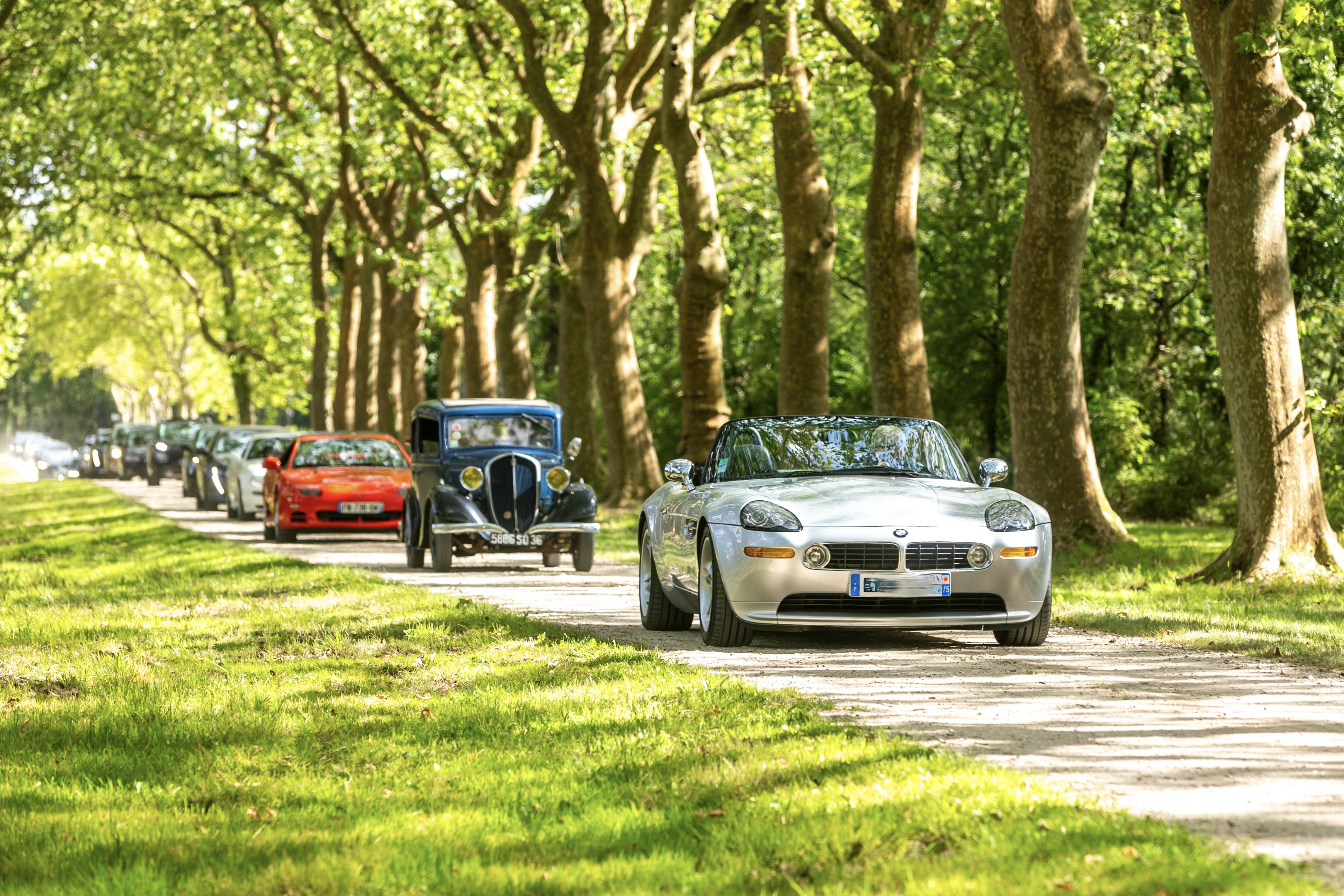 Magnifique! Bien l'idée de combiner mariage et rassemblement de voiture