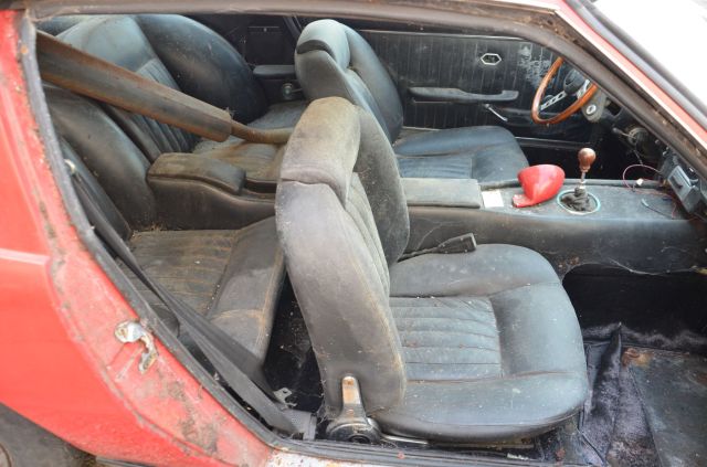 "Elle a été trouvée au fond d'un jardin où elle était recouverte d'une bâche de fortune qui n'a pas empêché le temps de faire son travail sur la carrosserie. Elle est effectivement sérieusement à restaurer pour la remettre sur la route. L'intérieur en cuir noir a été correctement perservé, ce qui permettra au restaurateur de le conserver après avoir bien nourri la sellerie. Cette Indy constitue un vrai projet de restauration de ces magnifiques Maserati des années 70 dont les prix ne cessent de grimper." :lol: :lol: