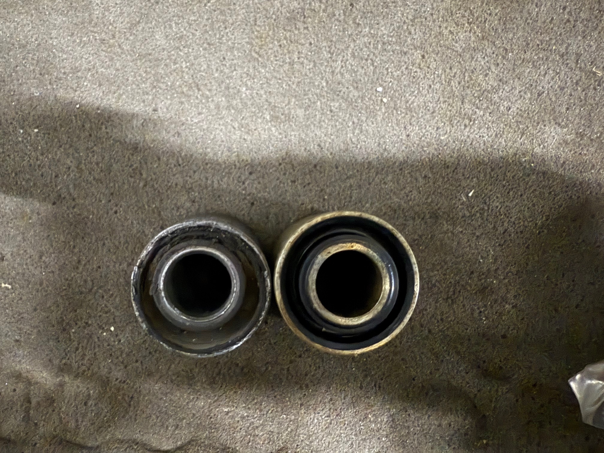 J'ai également ouvert l'amortisseur car voici les caoutchoucs après seulement 45Kkm l'ancien à droite le nouveau à gauche