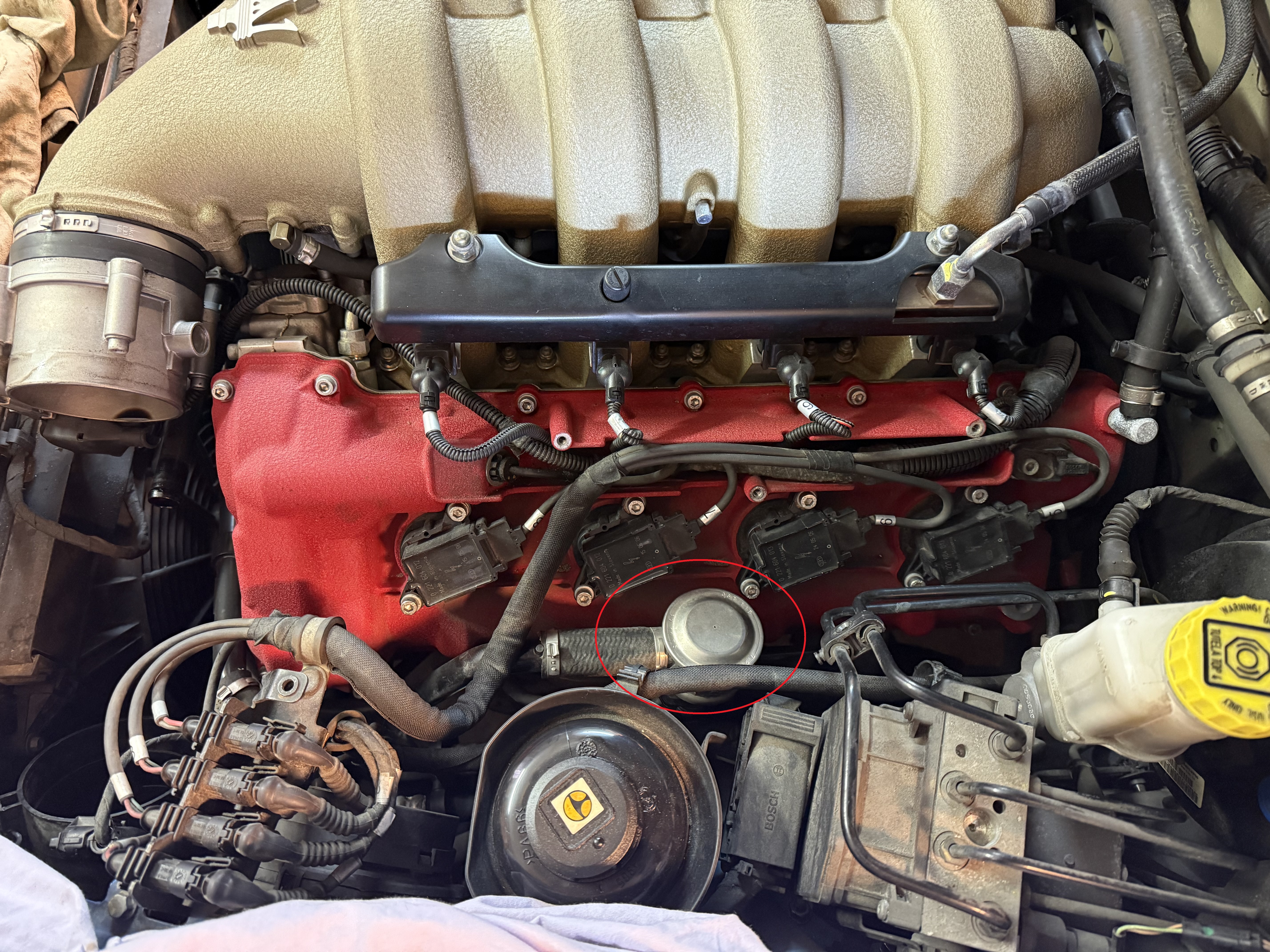 On commence donc par le côté conducteur en démontant la durite d'admission (c'est pour moi le côté le plus difficile par son accessibilité).