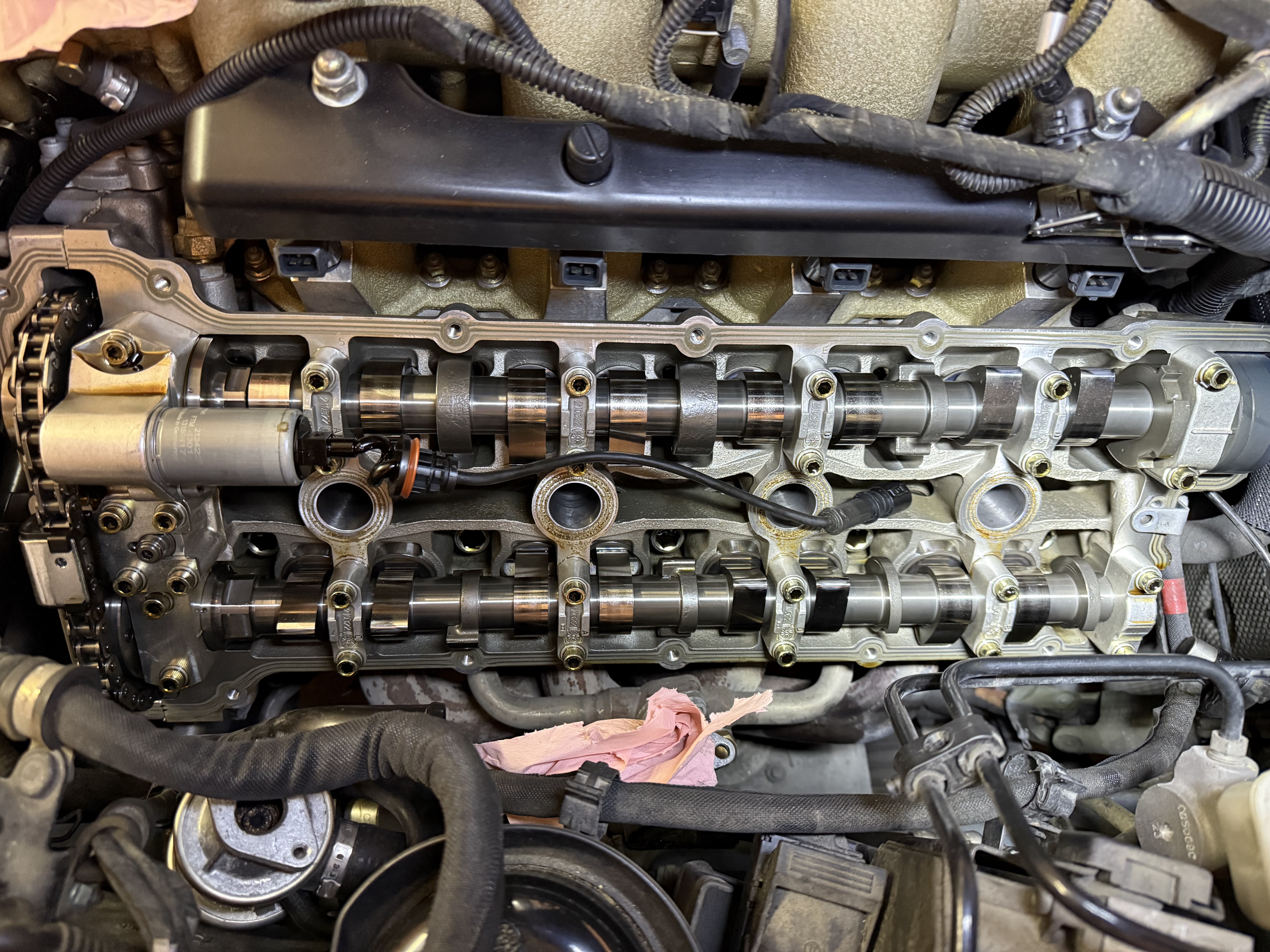 Pour moi il manque juste le joint du câble du variateur de came et et ce que je pense être le capteur PMH a l'arrière vers l'habitacle.