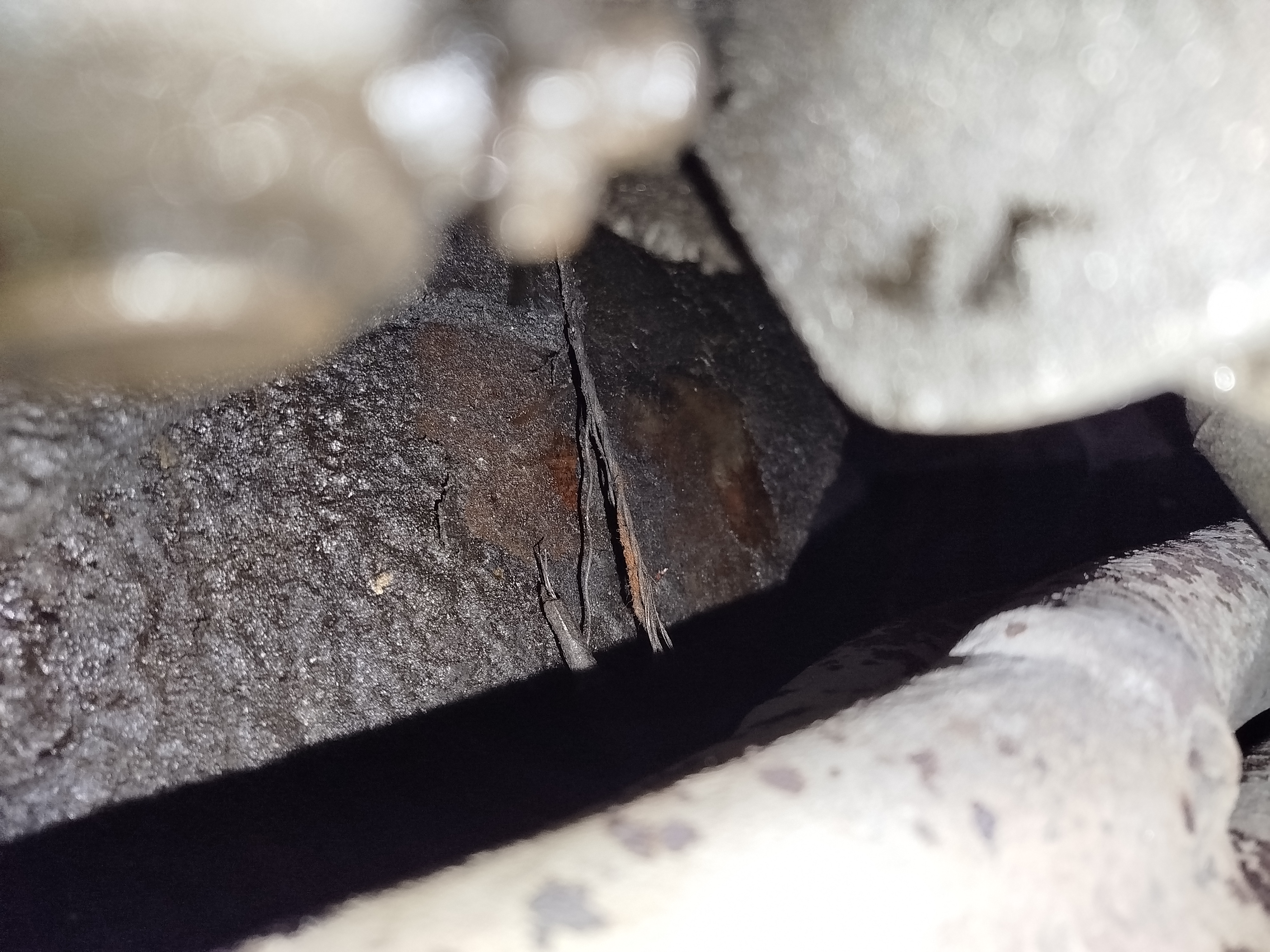 Finalement, avec le cric au max et la sécurité de deux chandelles, j'ai pu accéder en rampant jusqu'à la zone sinistrée: