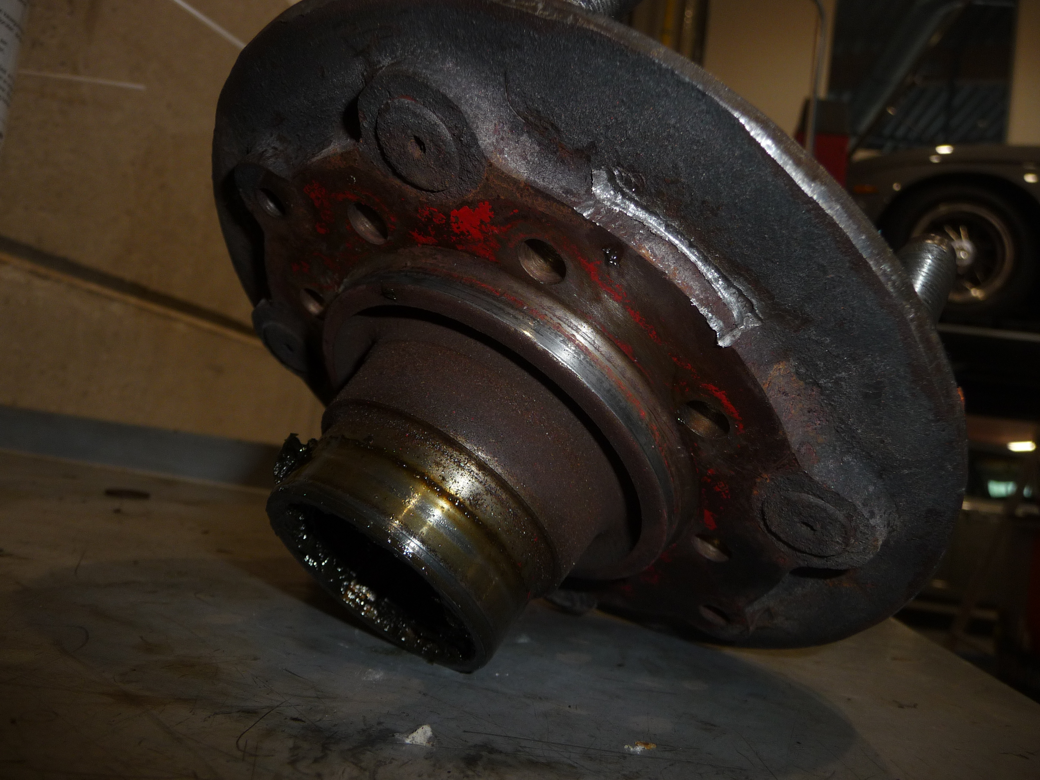 Non seulement c'est peut-être quasi-soudé dans le moyeu par la rouille, mais il n'est pas impossible non plus qu'il y ait eu assemblage d'origine à chaud ou avec de la colle (au pire, avec de la Loctite rouge :evil: ).