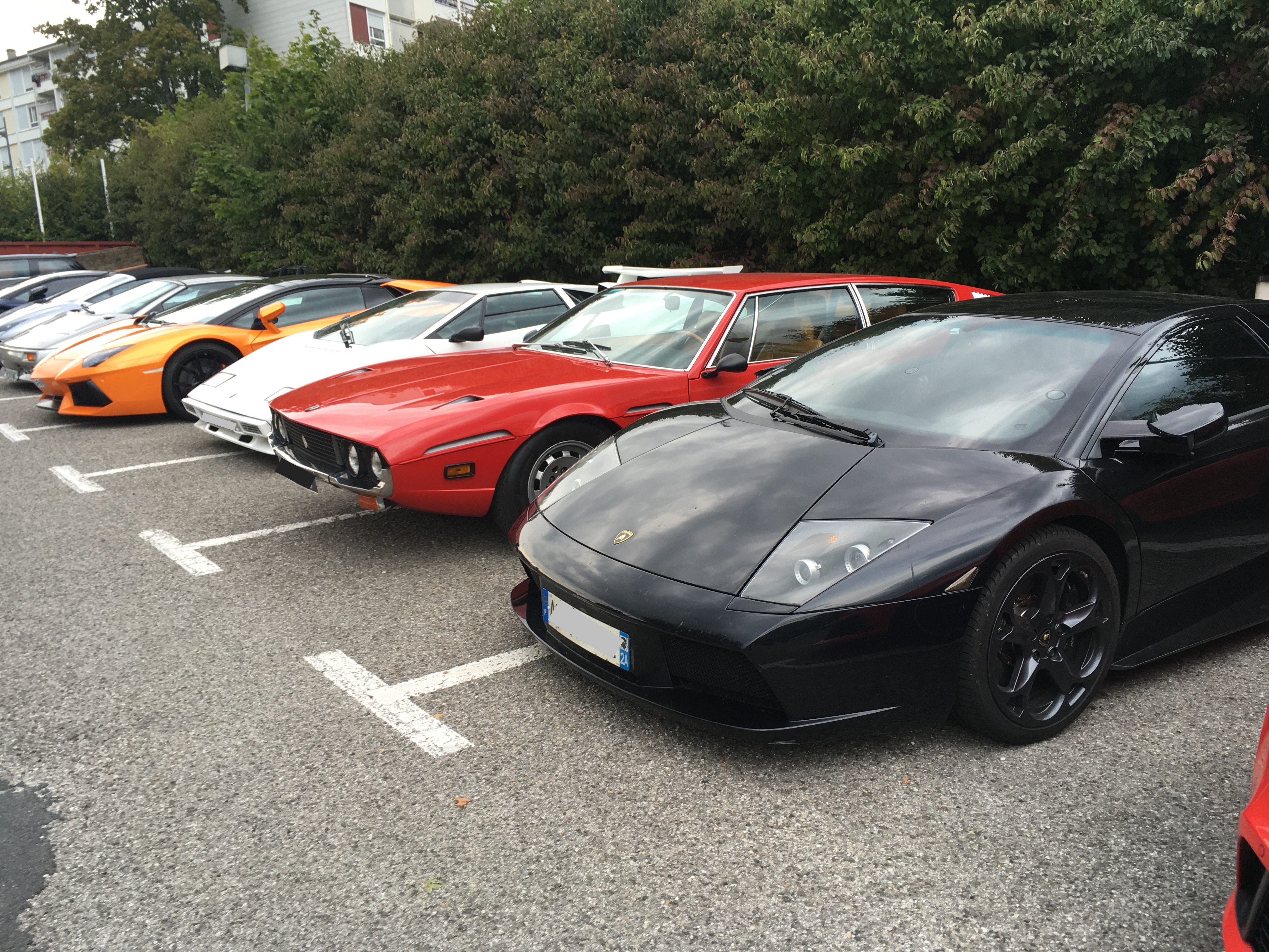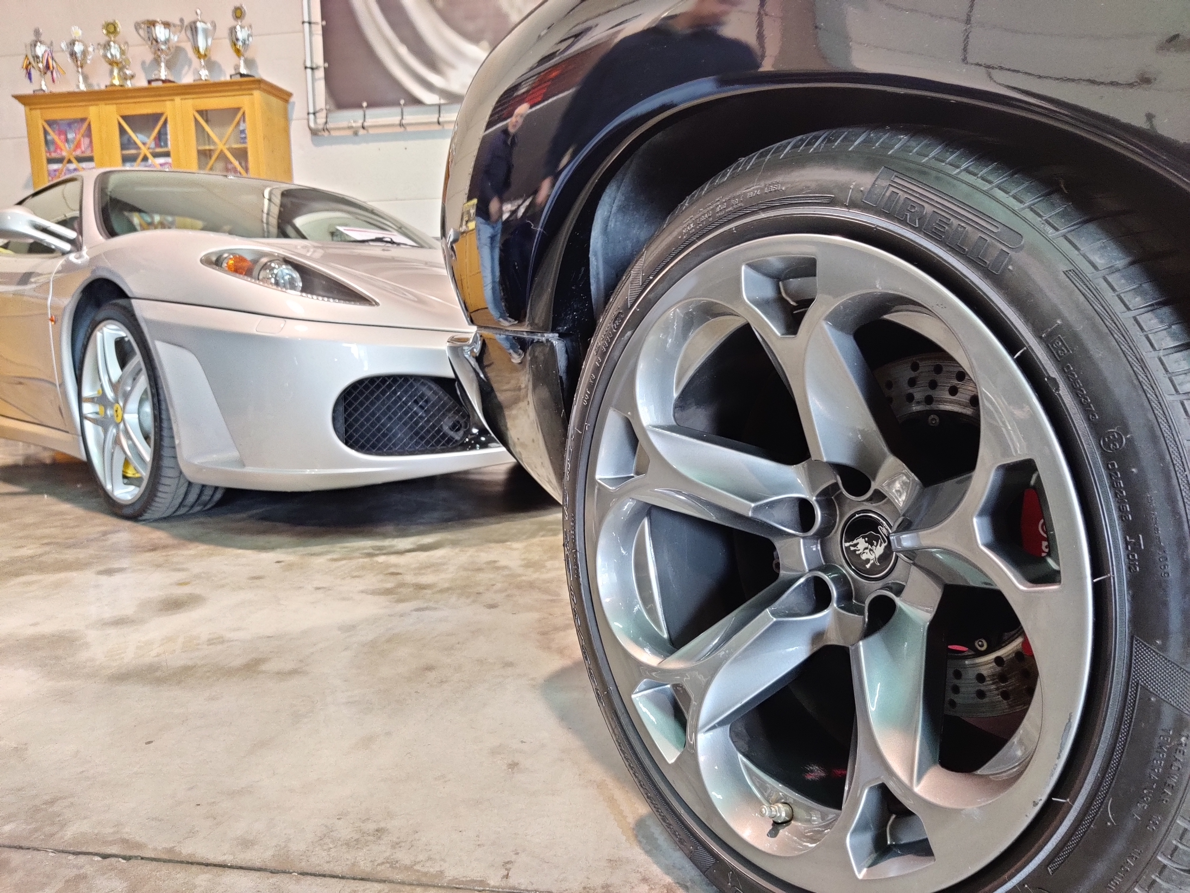 A l'entrée, entre trois ferrari, une impressionnante diablo SV menace.