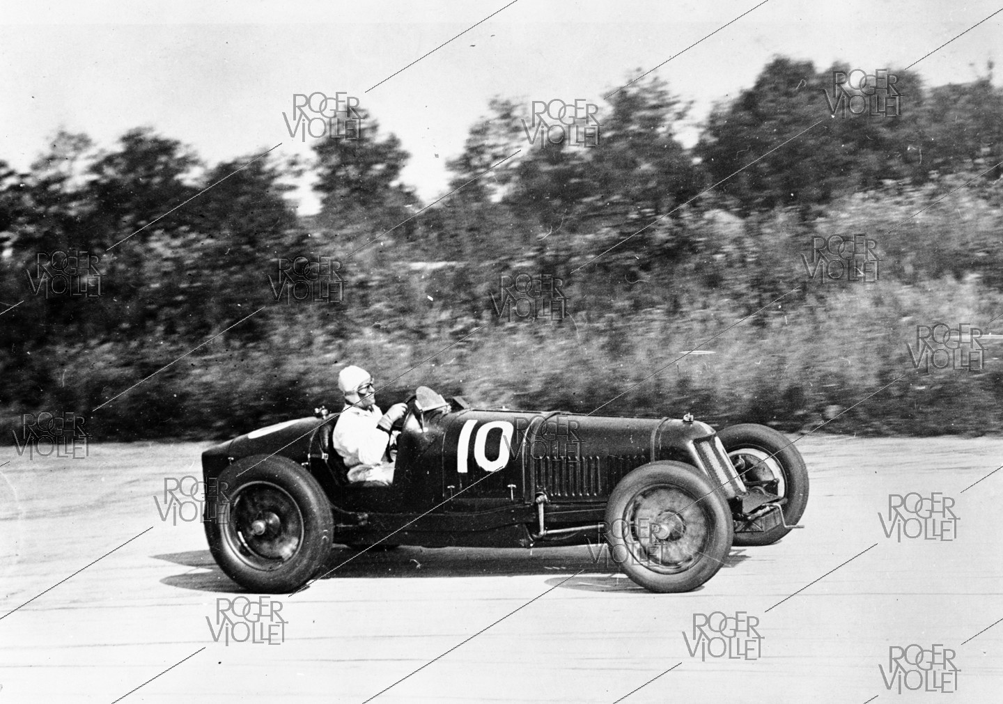 Luigi Fagioli dans une Maserati sur le circuit de Montlhéry lors du Grand Prix automobile de France.