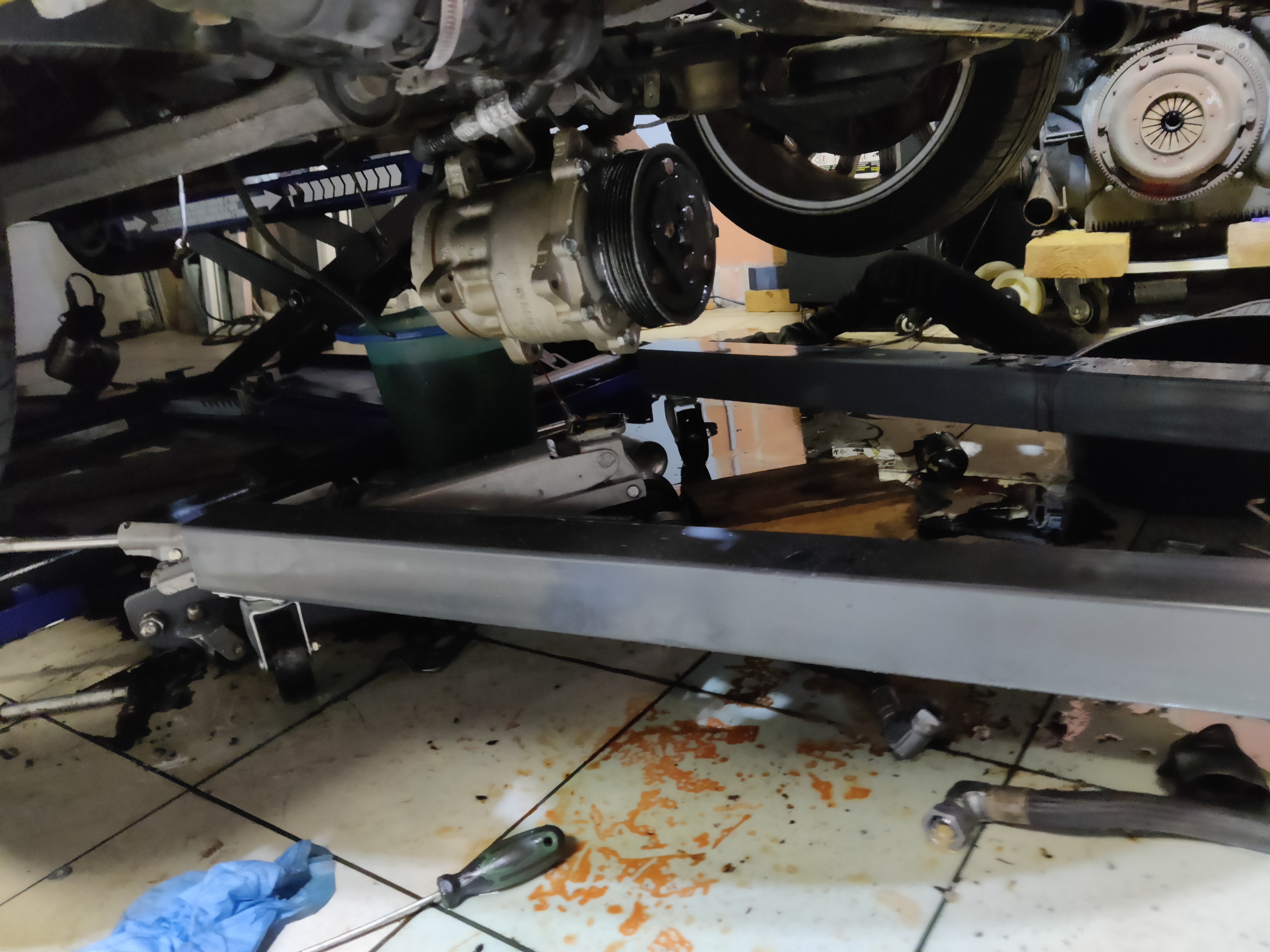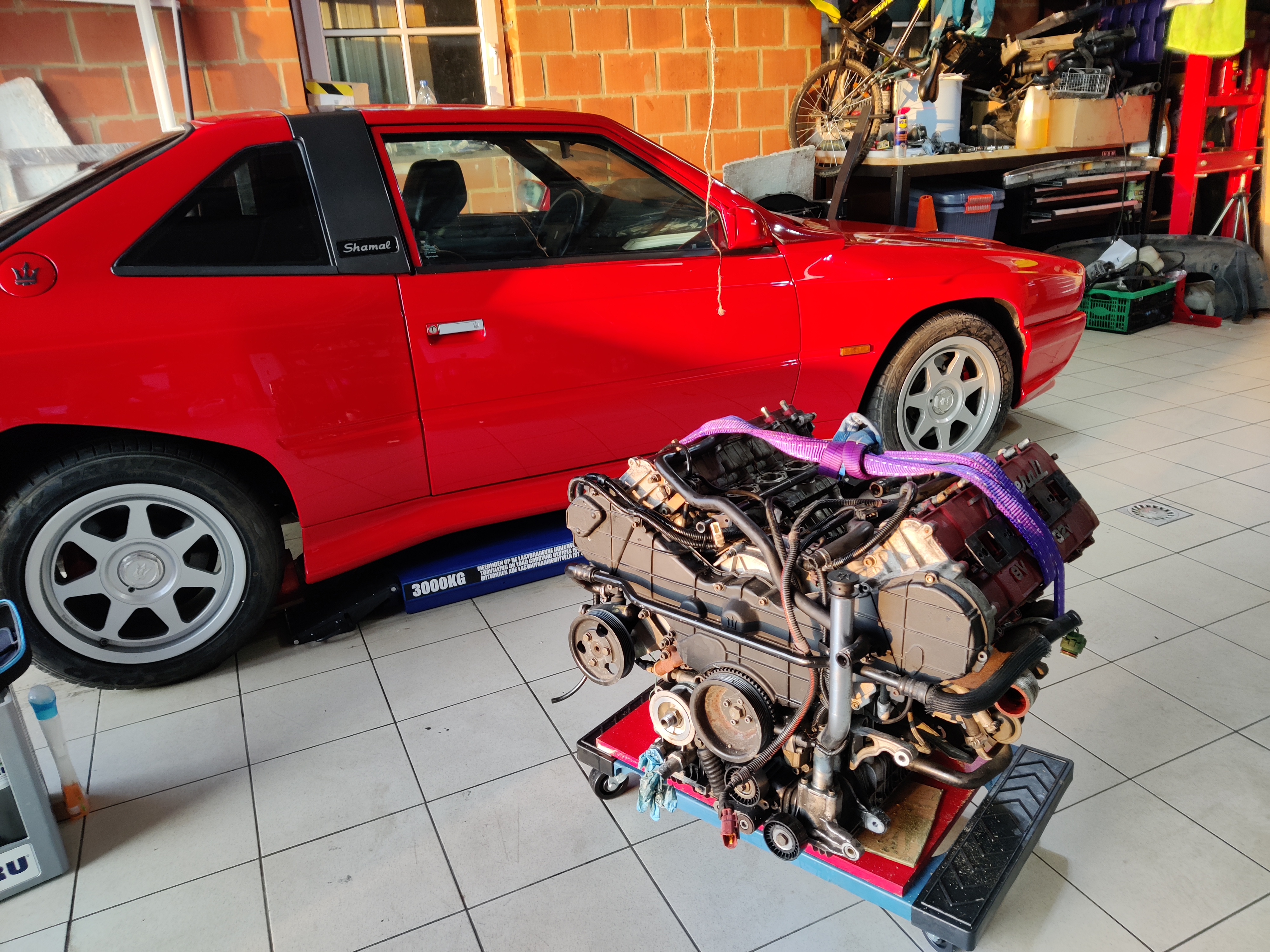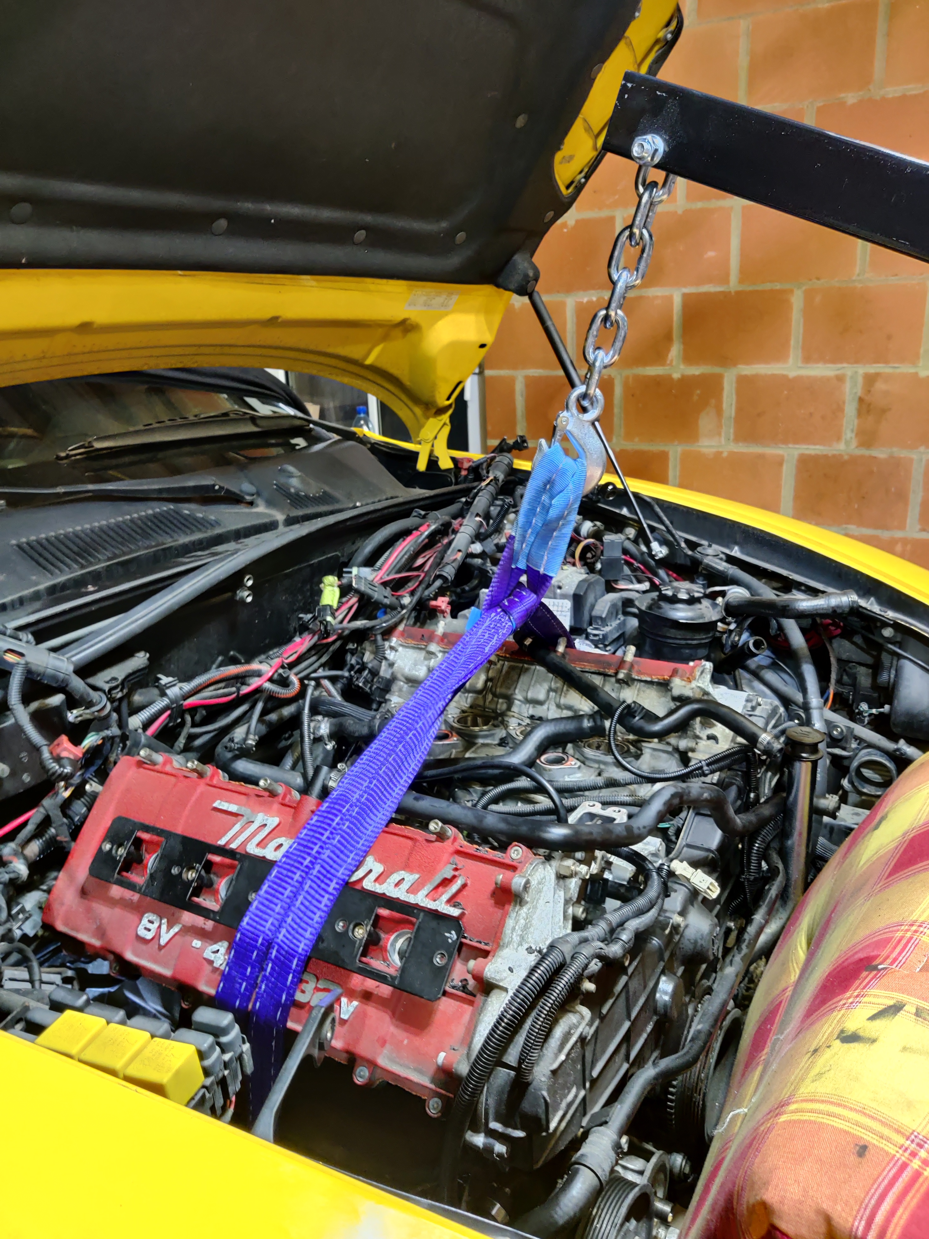 Donc comme prévu, il va falloir enlever le moteur (parce que dans la 3200 on ne peut pas déculasser sans retirer le moteur, ou alors très difficilement). Au vu de la galère sans fin pour enlever les collecteurs d'échappement, si vous deviez passer par là, un conseil, ne vous emmerdez pas, sortez le moteur. La grue est là, ça sert à ça.