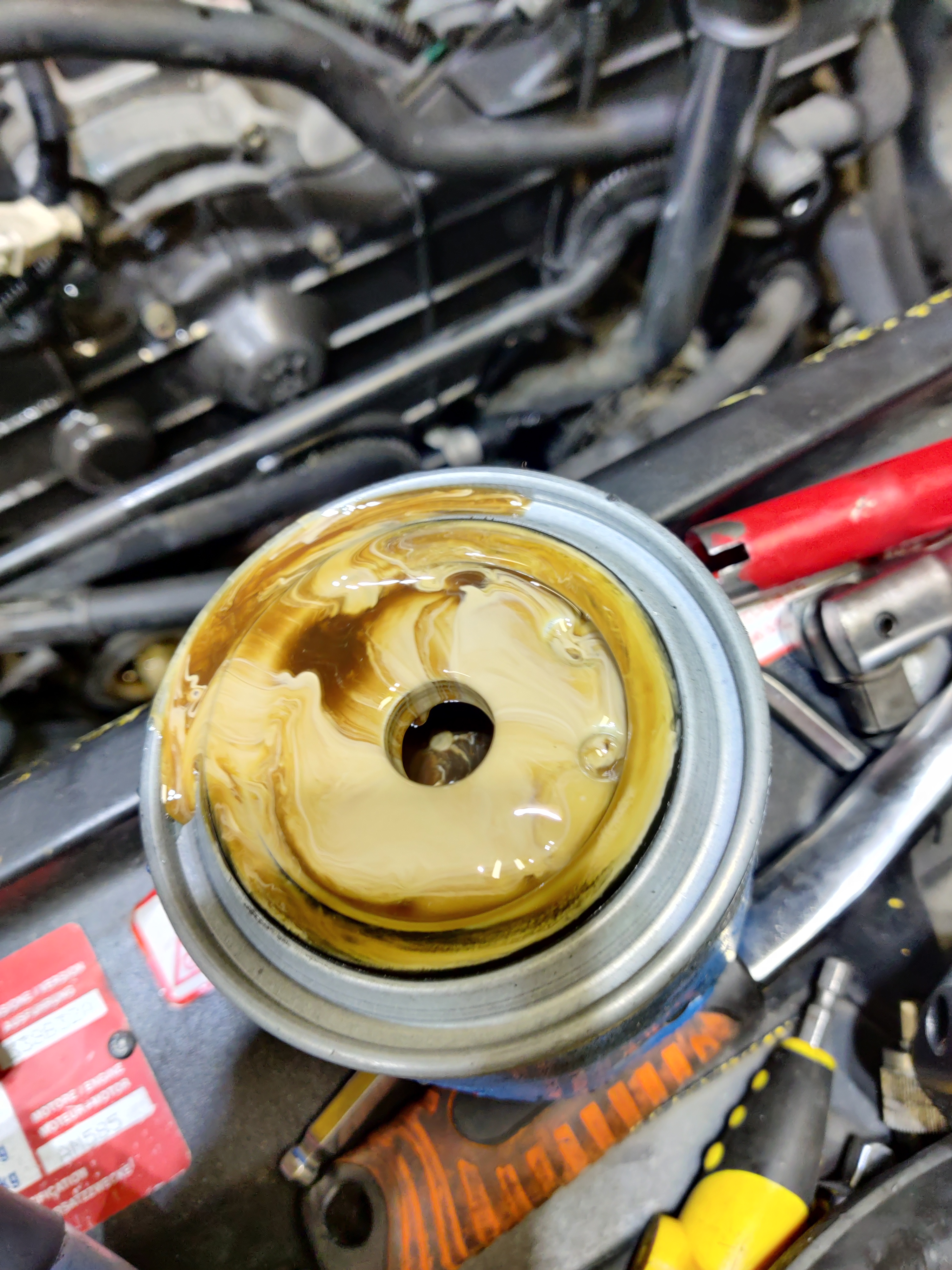 Et donc, sans surprise le moteur est rempli d'un mélange capuccineux délicieux. Sans vouloir me plaindre, c'est incroyable comment c'est