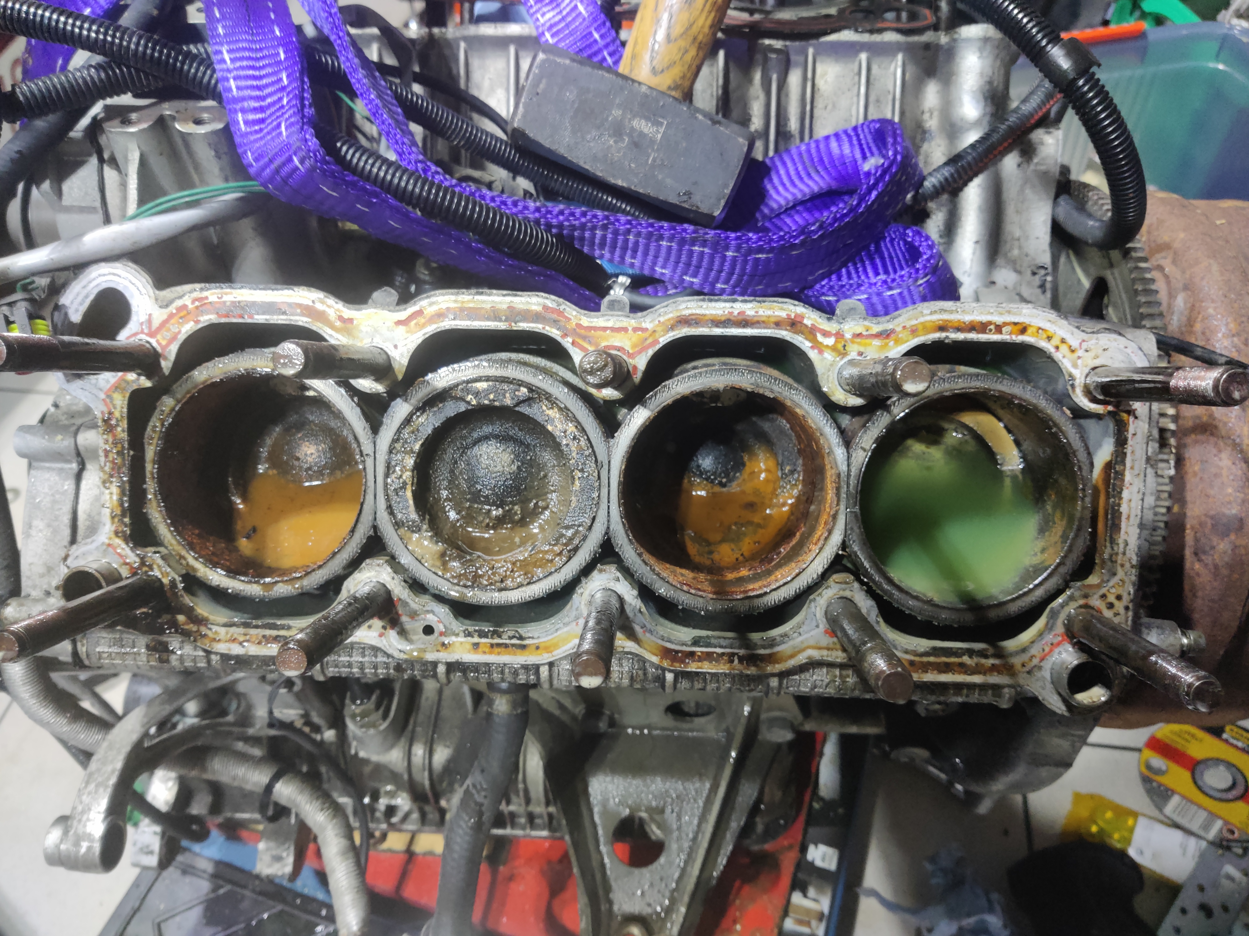 Il était prévu depuis le départ de démonter entièrement ce moteur, je savais qu'il y avait au moins un joint de culasse à prévoir avant même de poser l'offre, et bon, même au Japon, une assetto à moins de 5k€, c'est quand même pas assez cher.