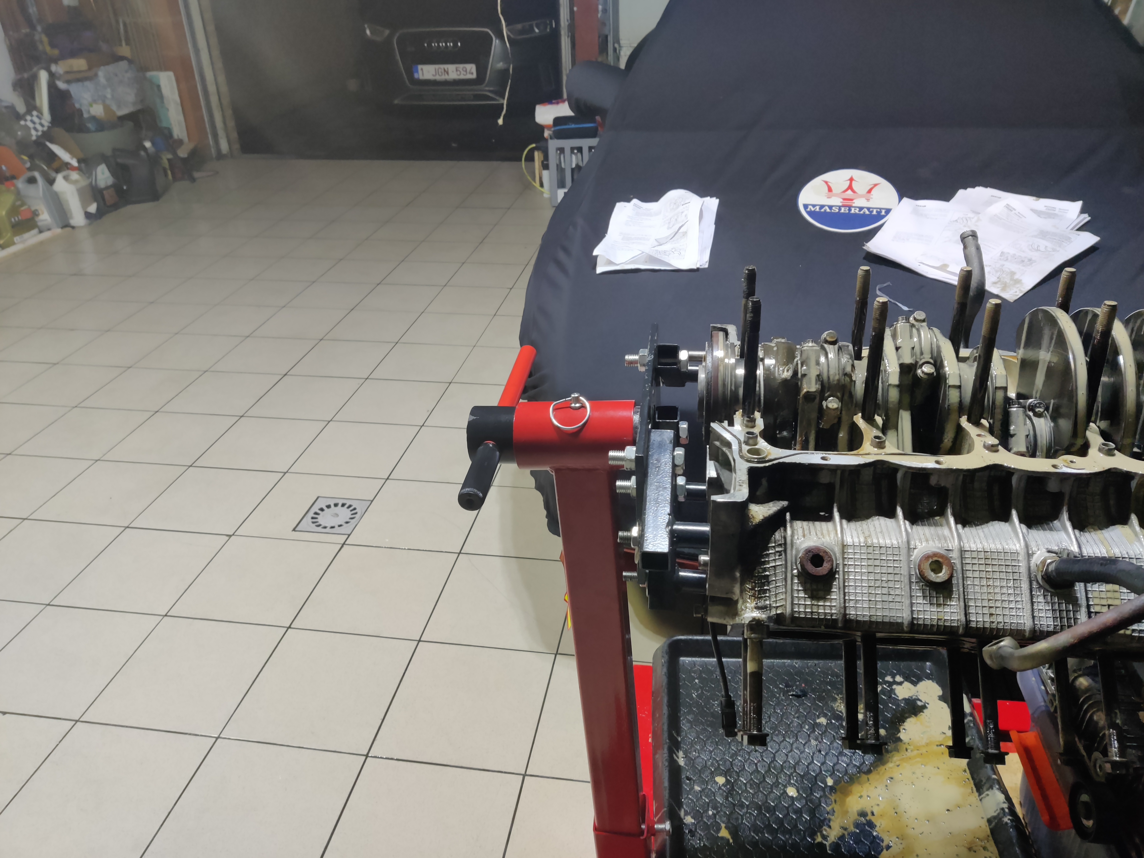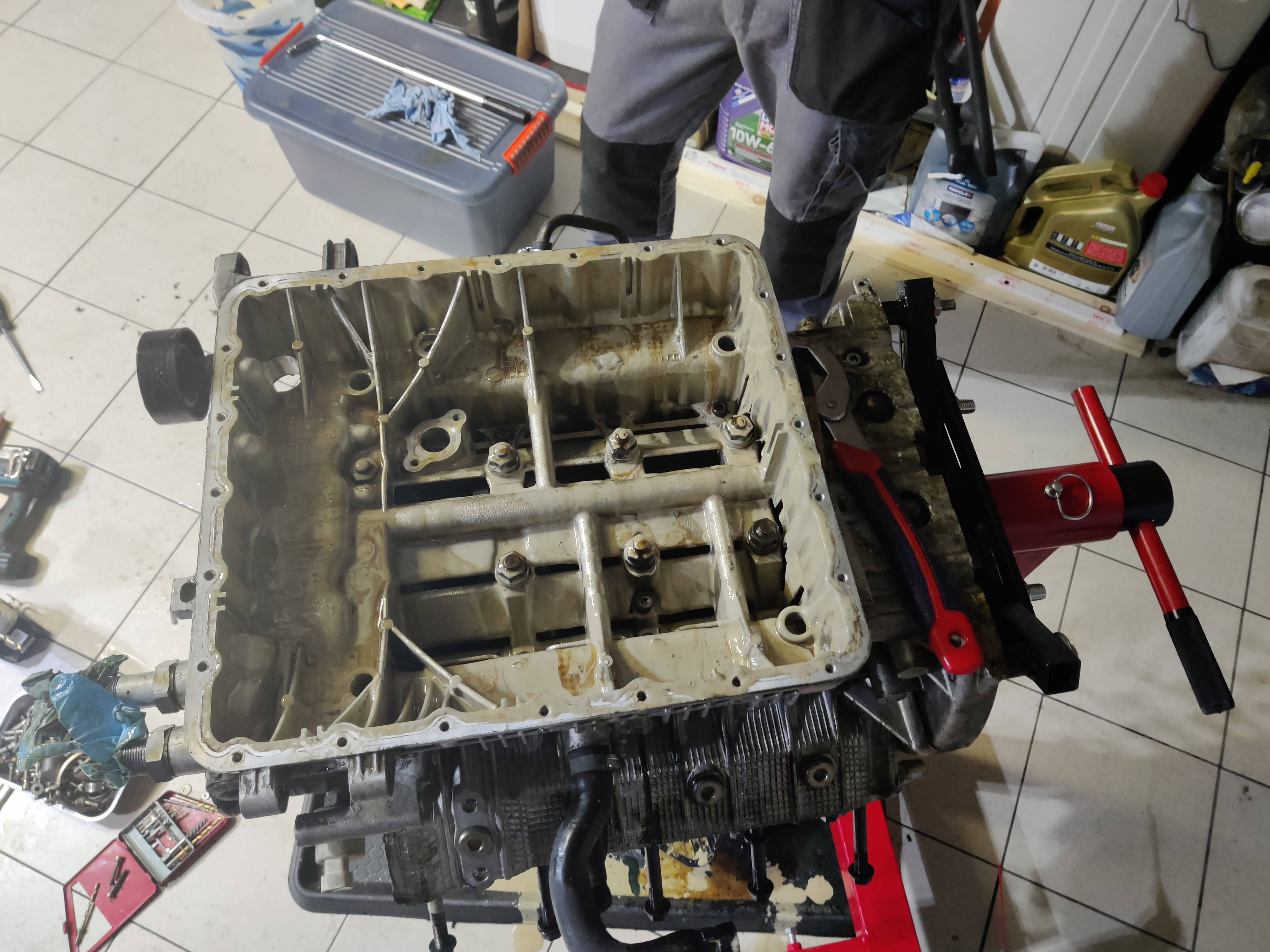 La suite, démontage du moteur numéro 2 (les culasses sont déjà enlevée, il ne reste que le bas moteur, ça devrait aller vite) et choix des pièces qui serviront à faire le moteur final.