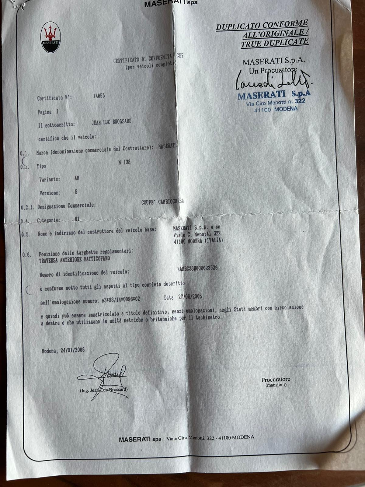 Vous savez comment contacter Maserati pour avoir la config d'origine svp ?
