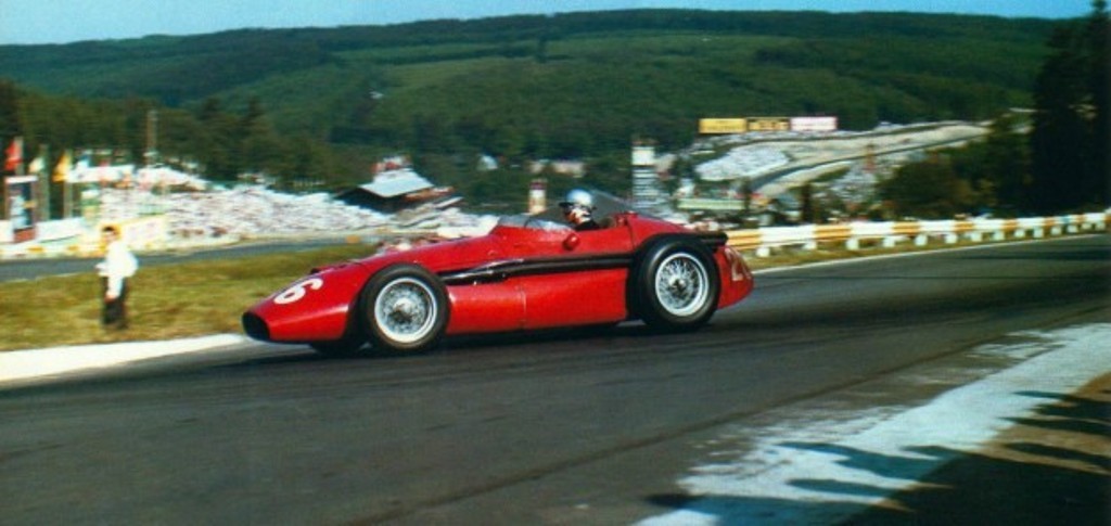 Dans les années 2000, où qu'elle se rendait, on trouvait une 250 F à faire essayer à Maria Teresa, 80 ans et cheveux blancs au vent. Elle a du presque toutes les conduire !!! L'orientation du bolide est presque la même que sur la photo de Spa 1958 au dessus !!