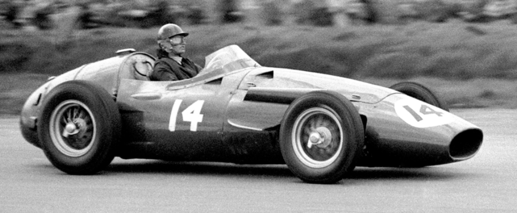 La Maserati 250F, l'archétype de la Formule 1 à moteur avant : 2.5 litres, 6 cylindres en ligne, double allumage, 270 cv à 290 cv (1957) pour 650 kg voire 630 kg (1957).