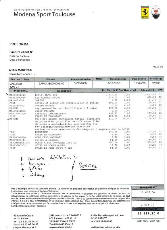 Et oui, je suis téméraire et ambitieux, quand j'ai acheté la voiture, il y avait le carnet d'entretient et tout un tas de factures dont la fameuse facture des 100000km de 15 199.25€. Je vous l'ai mise facture en pièce jointe