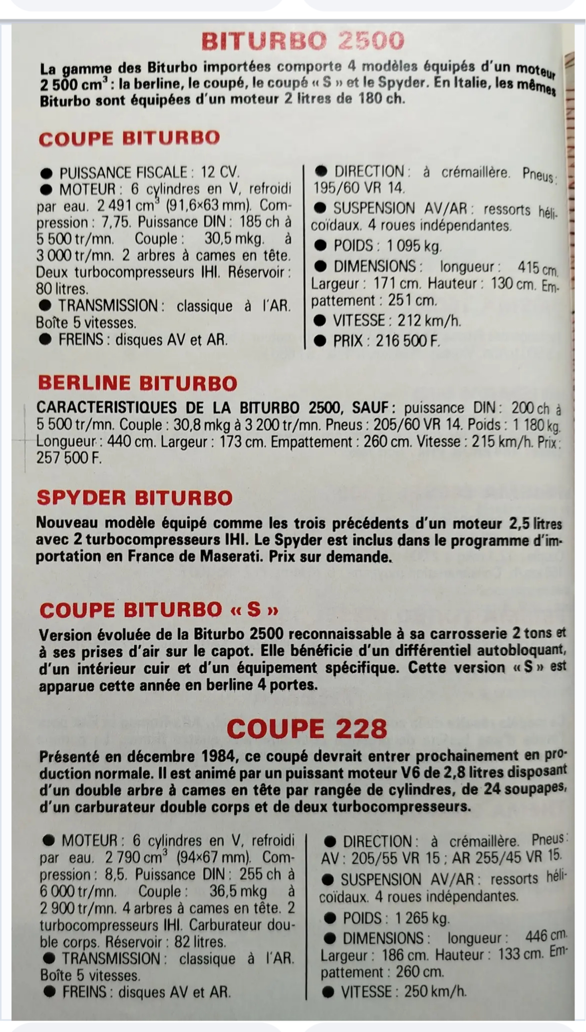 Re: Coupés Biturbo à carburateur
