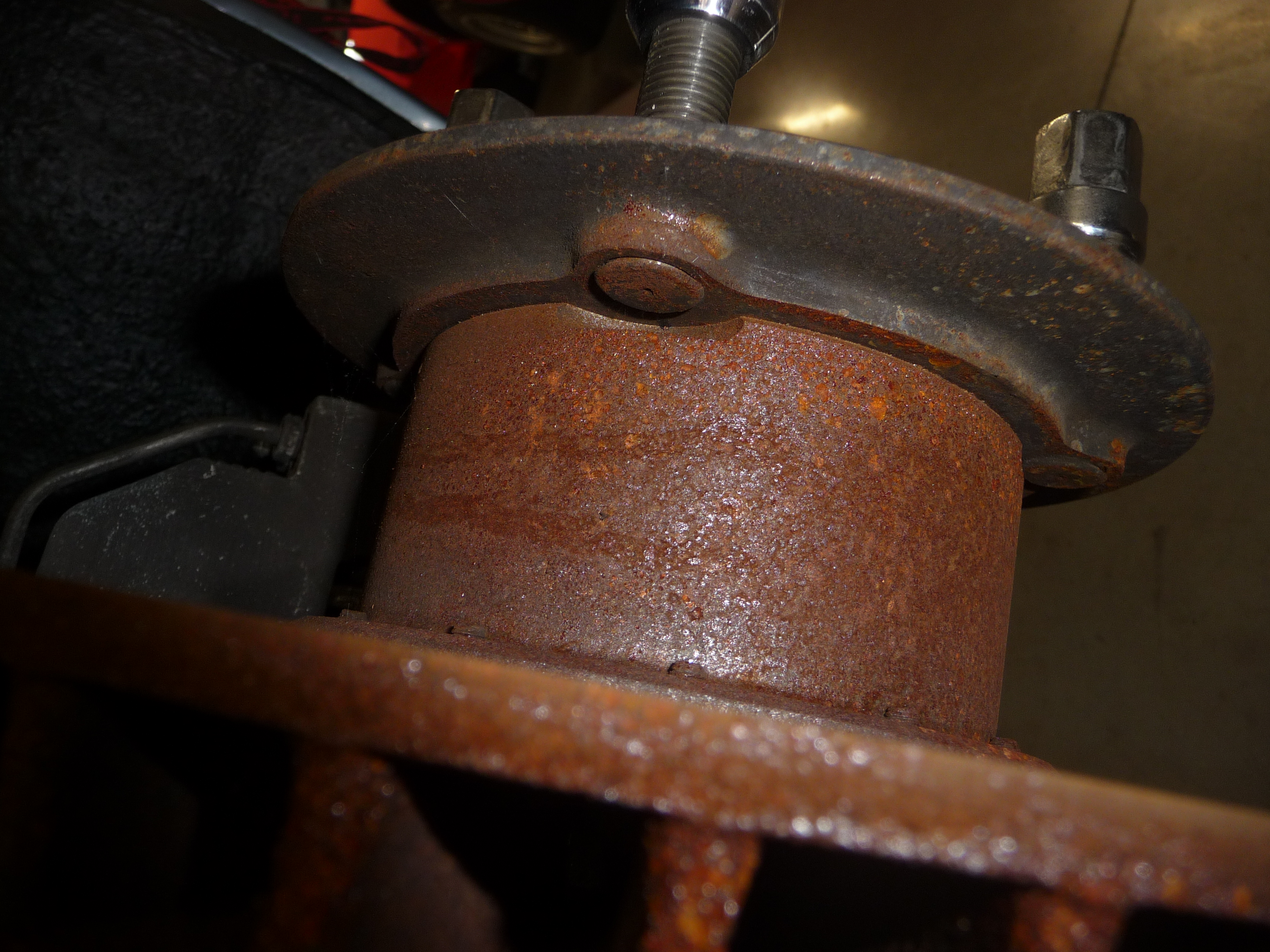 Vues ici lors d'une précédente visite avec disque de frein démonté: