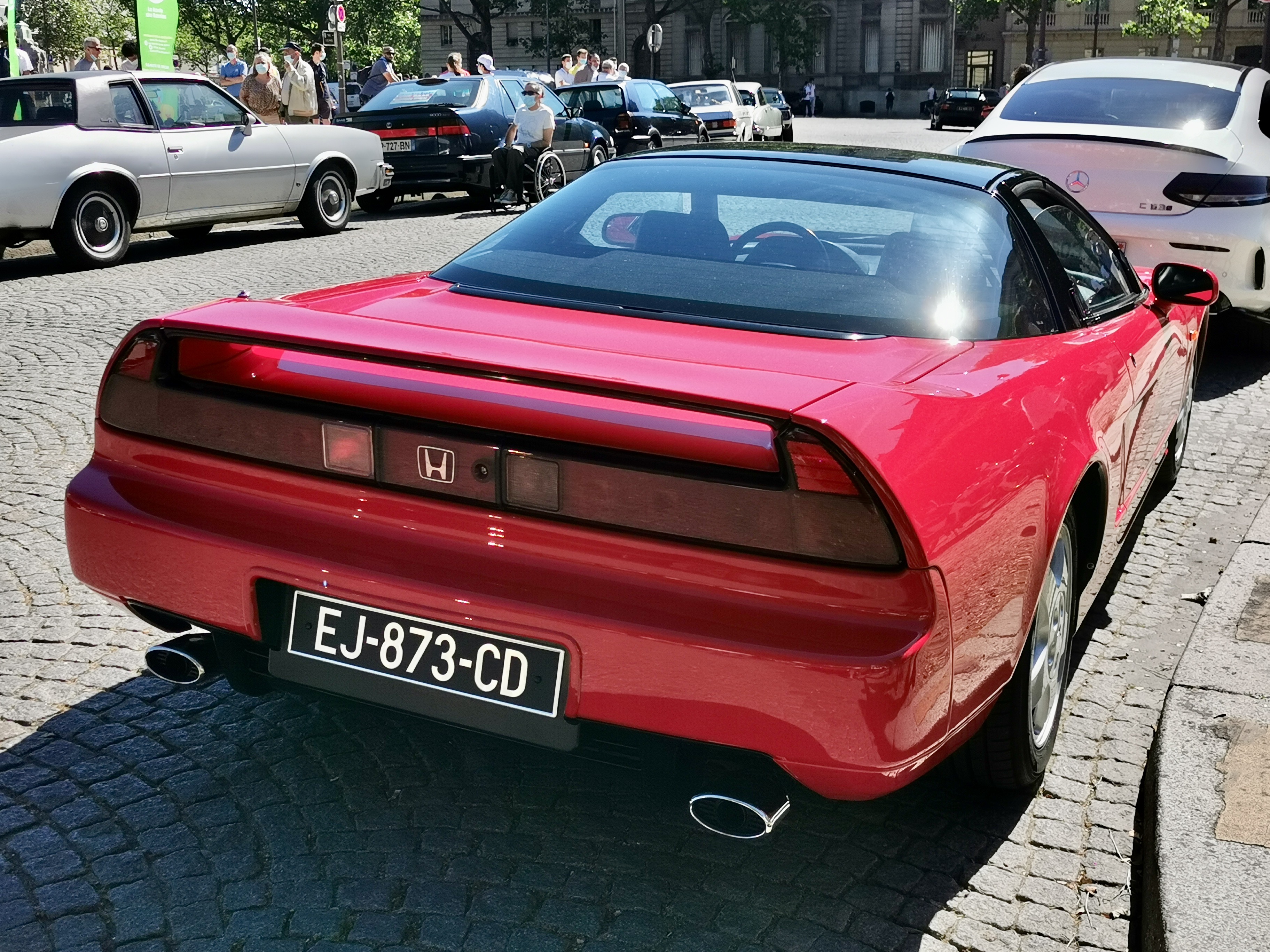 Une Ferrari qui fait grise mine face à la NSX qui lui a piqué la couleur