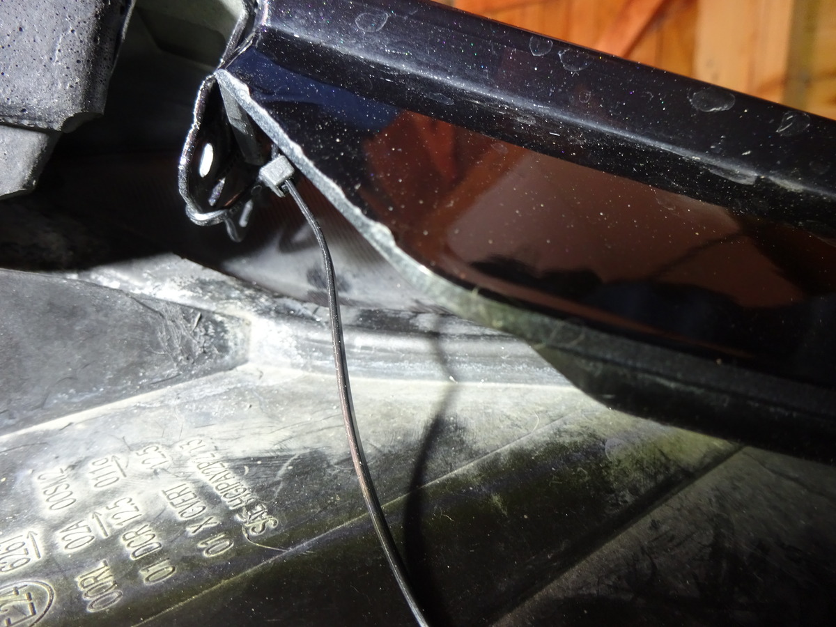 Petit soucis que voilà Donc petit démontage partiel de la calandre pour trouver çà !!! J'ai fixé provisoirement l'aile et la calandre avec un collier plastique Au vu du prix de ce bout de plastique je vais essayé de le faire imprimé