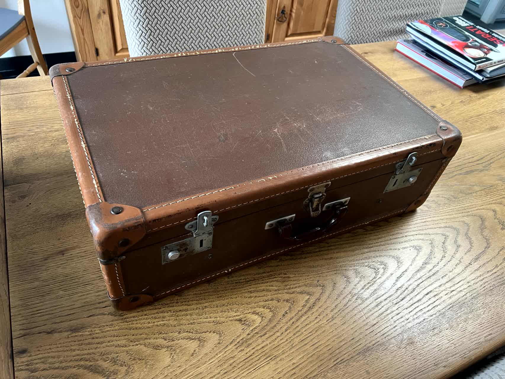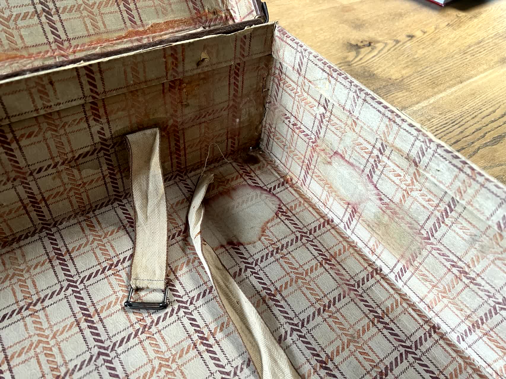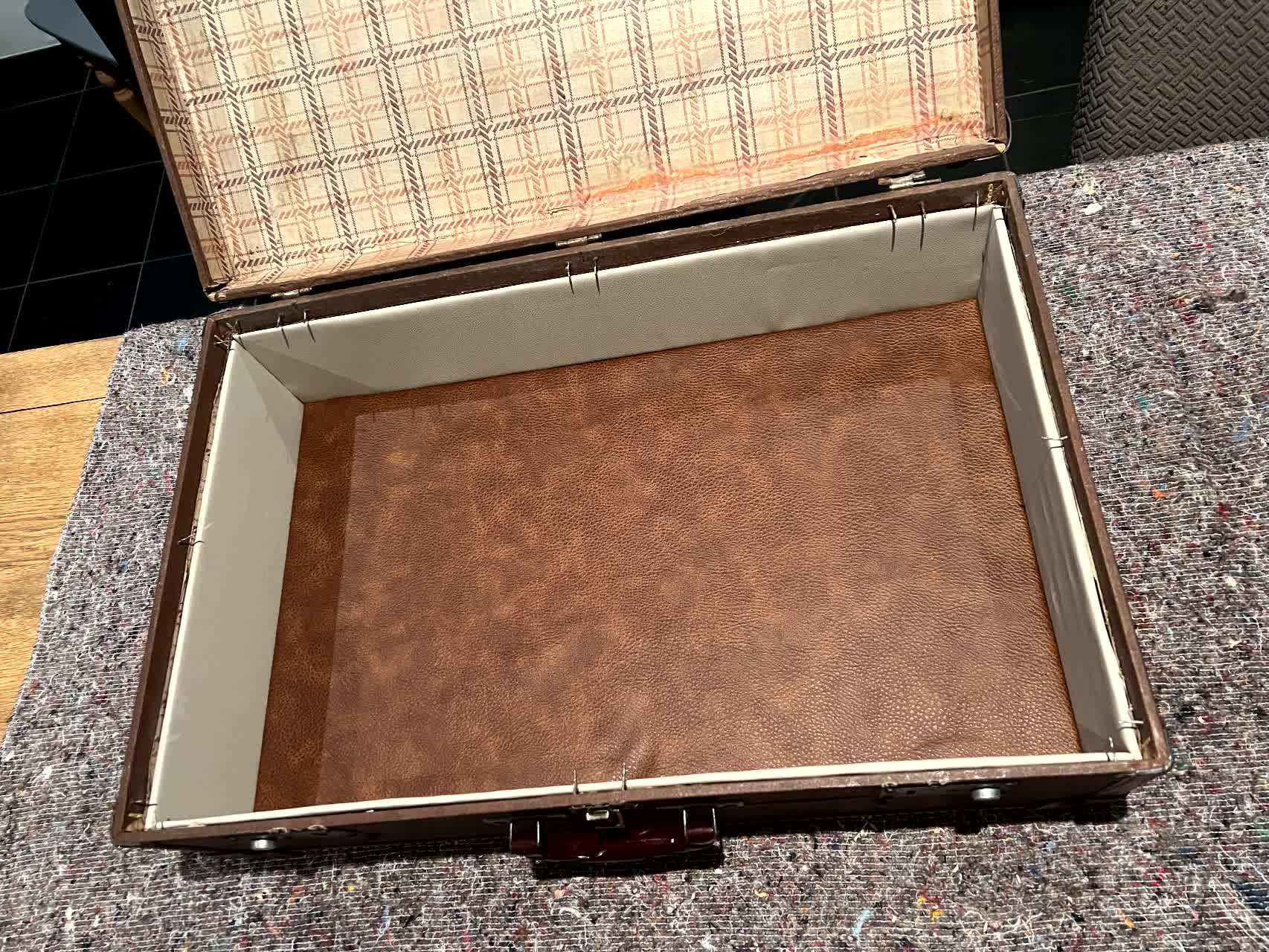 En premier lieu, trouver la valise. C'est fait, ca sera une bonne vieille valise en carton récupérée de l'arrière grand-mère paternelle de ma douce moitié.