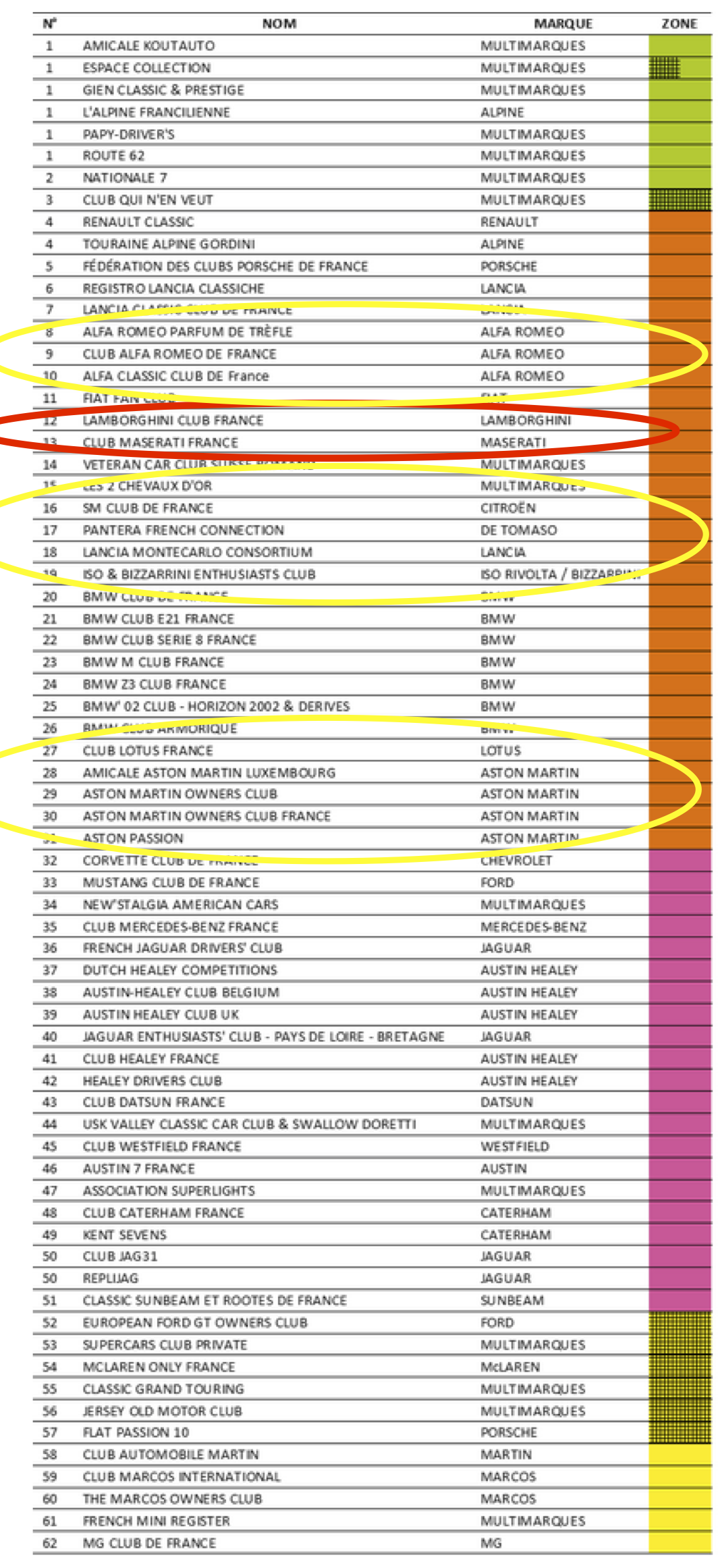 Reçu des infos de Peter Auto, aces le plan général des clubs et la liste.