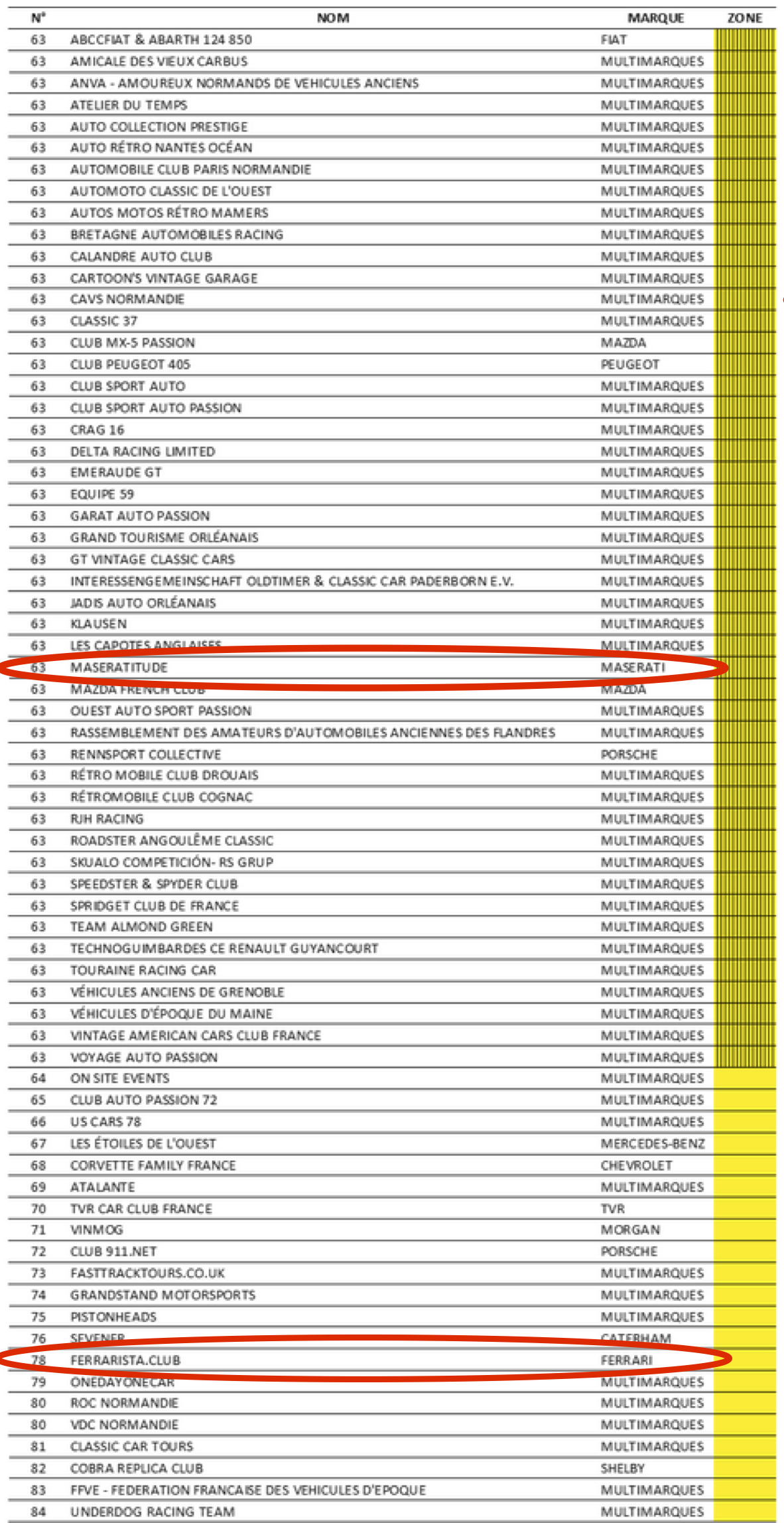J’ignore si dans la zone 63 (jaune/noir) ou se trouvera Maseratitude, les parkings clubs sont délimités... ou si c’est au petit bonheur.