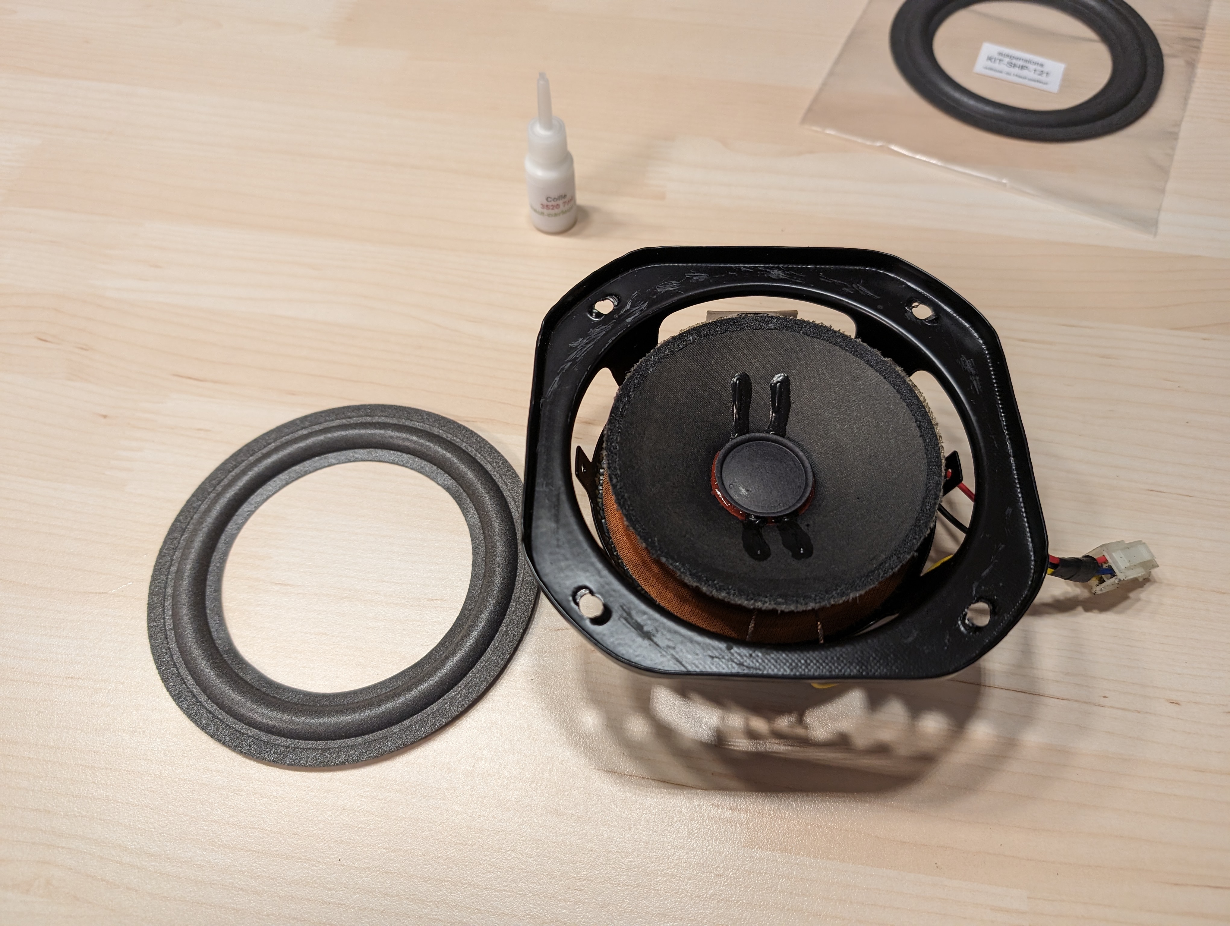 Hop et voilà ça fait du bien réparation des 4 enceintes arrière car les suspensions étaient mortes.