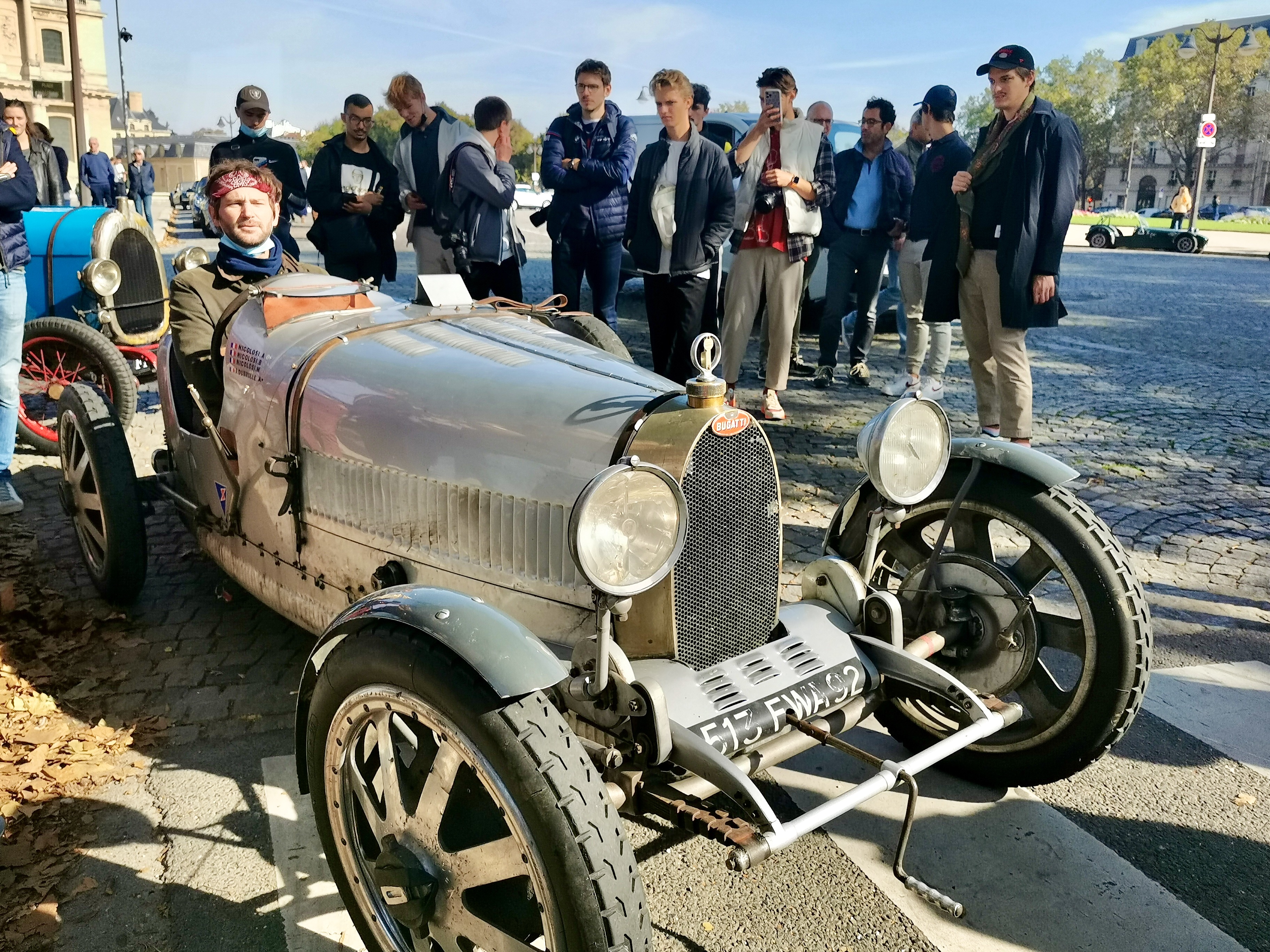 Ici le jeune homme assis derrière pourrait être le pilote parisien, mais les ailettes au dessus de la plaque sont différentes.